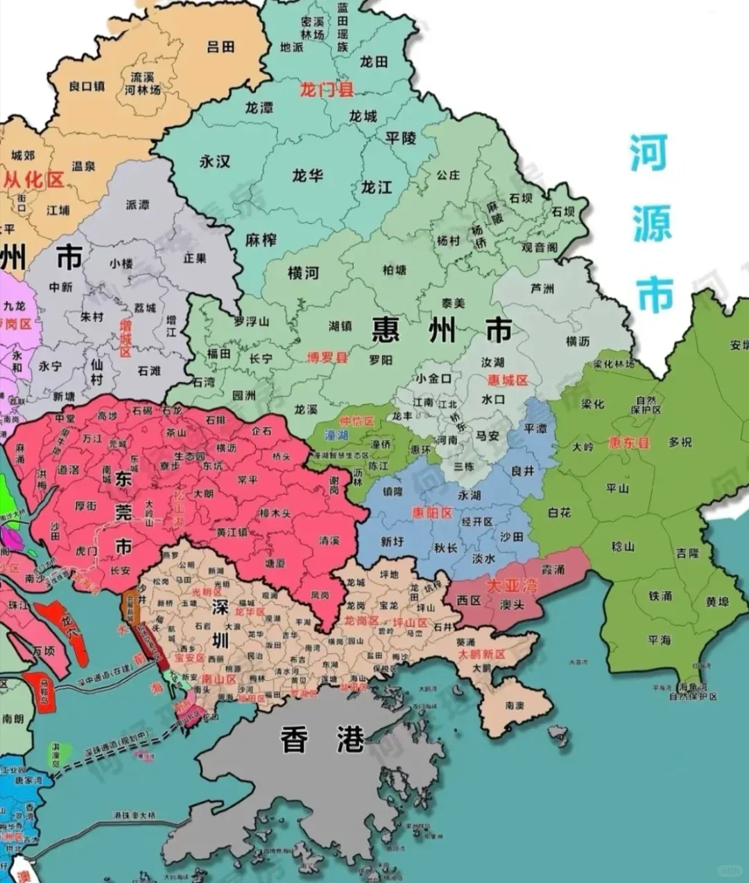香港-深圳-东莞-惠州-河源,构成了珠三角的【雁阵模型】。