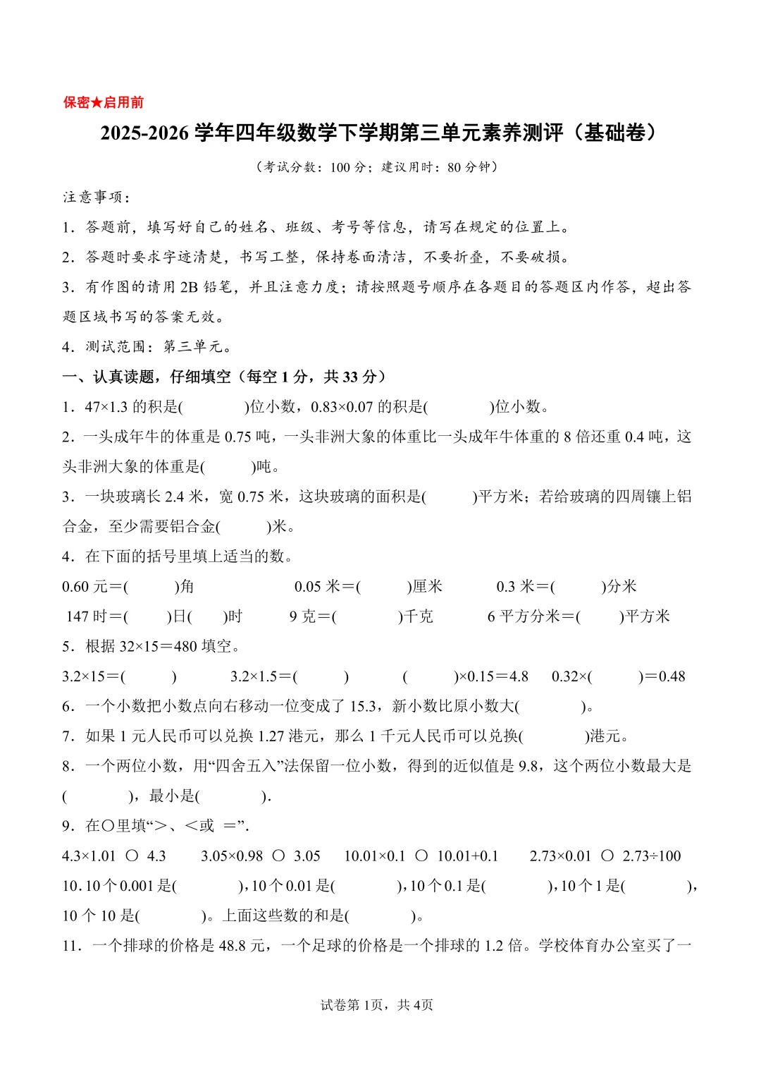 深圳1-6年级下学期语文单元测试卷(第一单元)