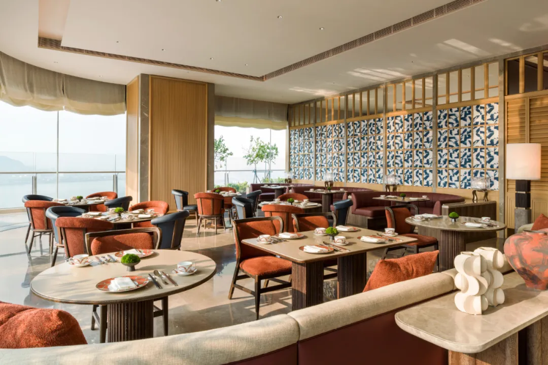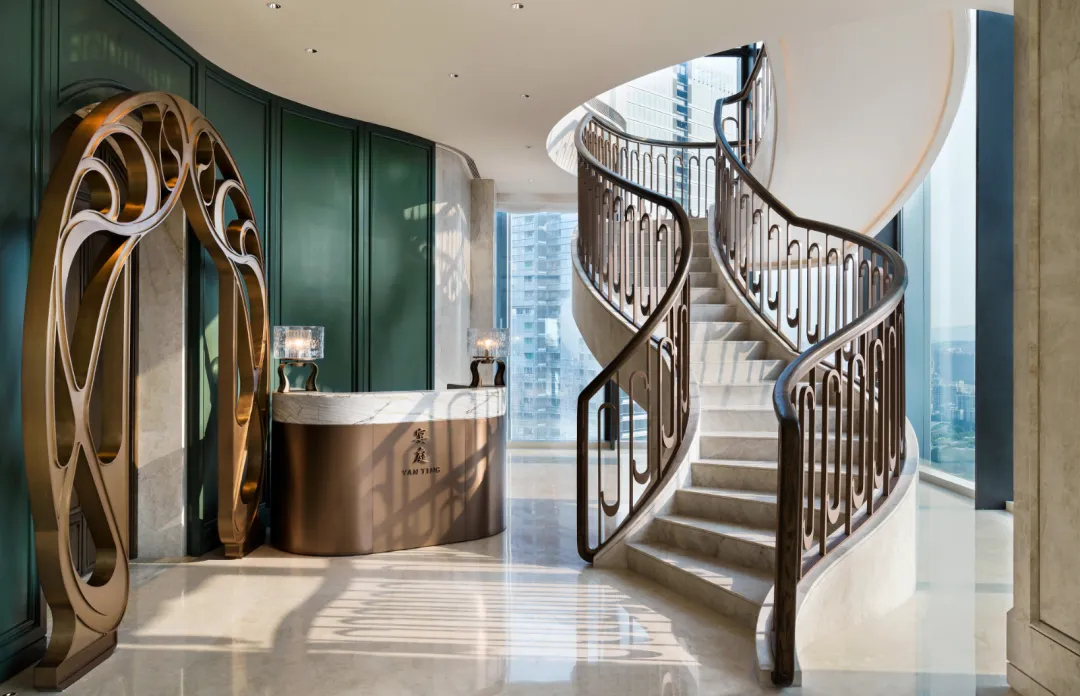 深圳前海华侨城瑞吉酒店·宴庭中餐厅,坐落于酒店34层。走进宴庭,一眼看到的橡木、大理石、水磨石这些天然材质,让几何线条与东方美学有了温度。而包厢的设计,则取意中国传统山石园林,又融入了西方新艺术运动的线条感——正如这里出品的菜式:根植传统,却不囿于传统。