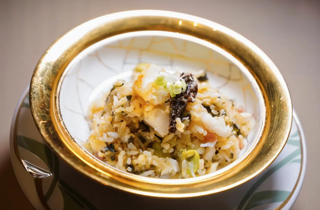 主食是「冬去春来闽东壹鱼饭」,把黄鱼和春蔬一起焖进米饭里。这道主食看似朴实,实则讲究“不时不食”——鱼是冬日积蓄的丰腴,蔬是春天初绽的生机,两者在砂锅中相遇,正如旧新交替、时序更迭的那种感觉,时令的精华都凝在这一碗饭里了。