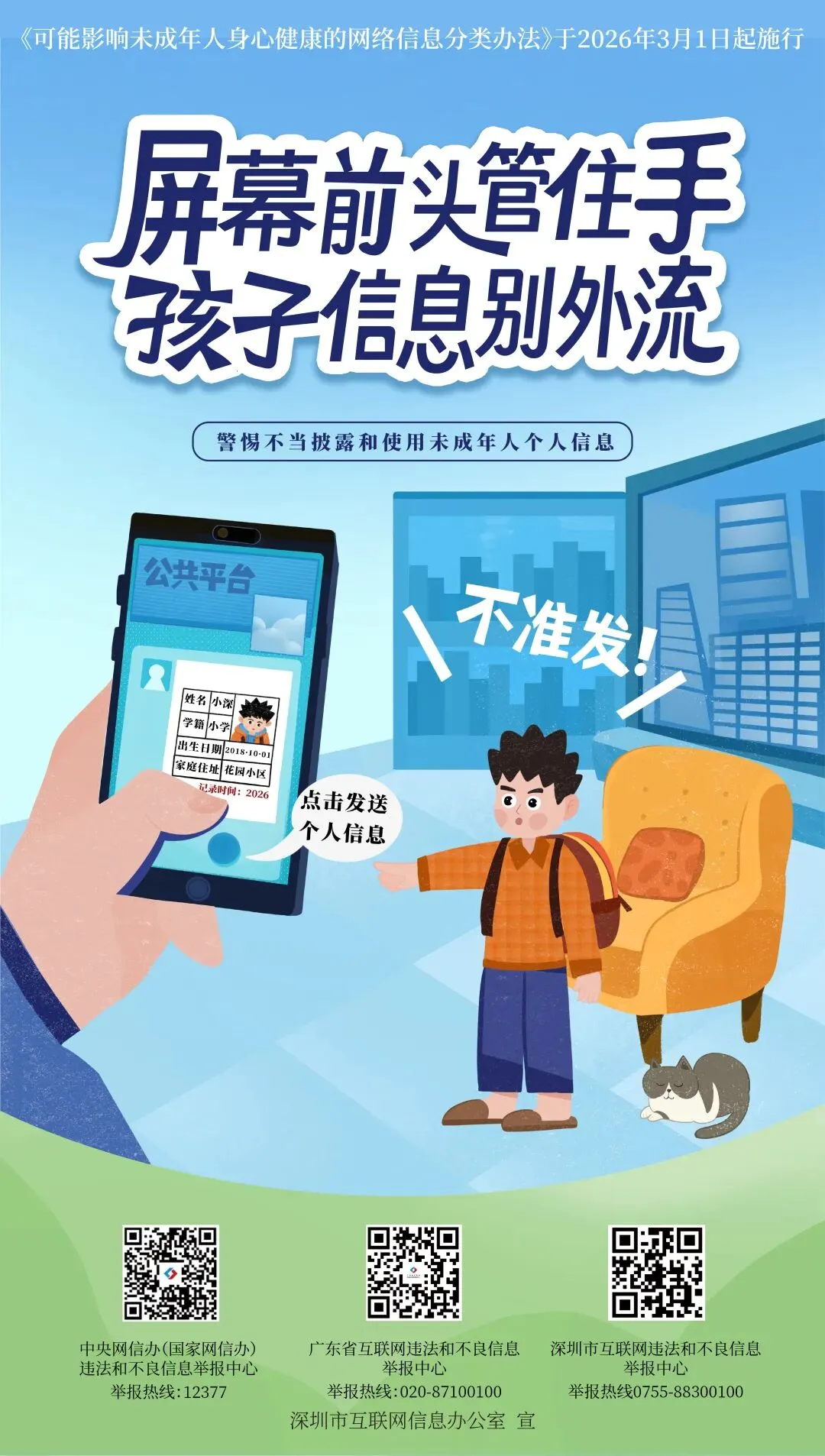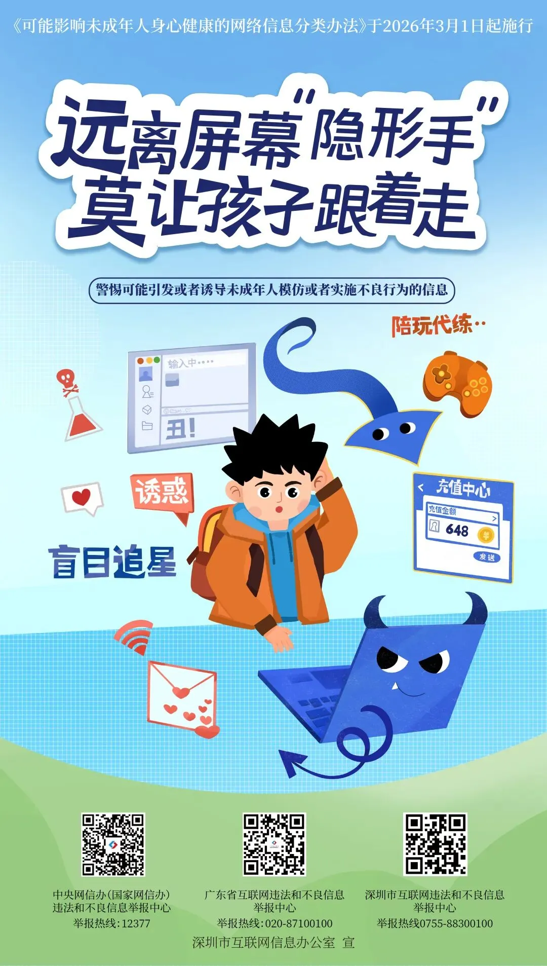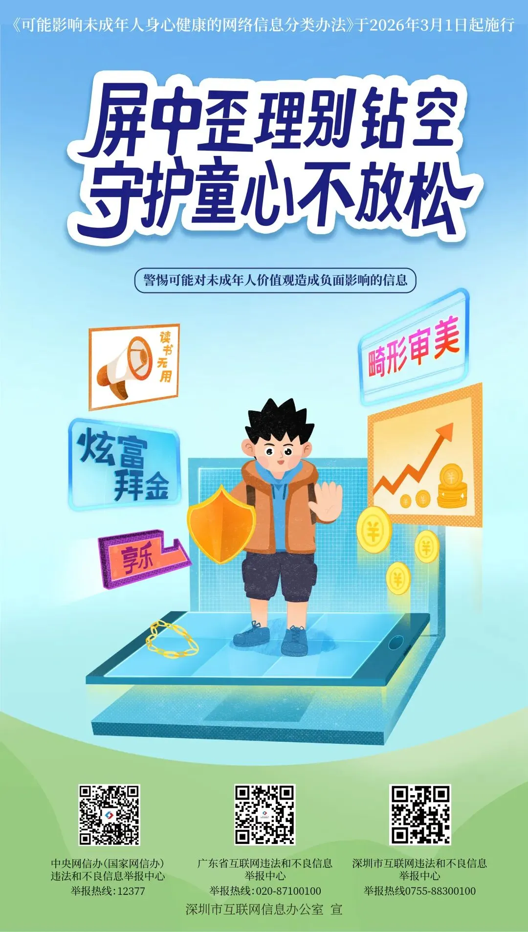 现场首发深圳未成年人网络共护系列宣传海报,宣传贯彻《可能影响未成年人身心健康的网络信息分类办法》内容,鼓励市民当好清朗网络“合伙人”。同时,还推出湾区之眼、万思未来馆等第二批10家“护苗体验营”名单,以线下生动场景引导孩子拥抱现实世界。