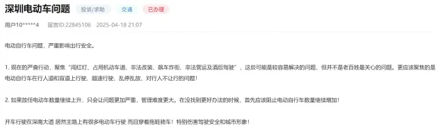 打开人民网领导留言板,搜索“深圳”“电动车”等关键词,就能看到,关于电动车违法乱象的投诉比比皆是。