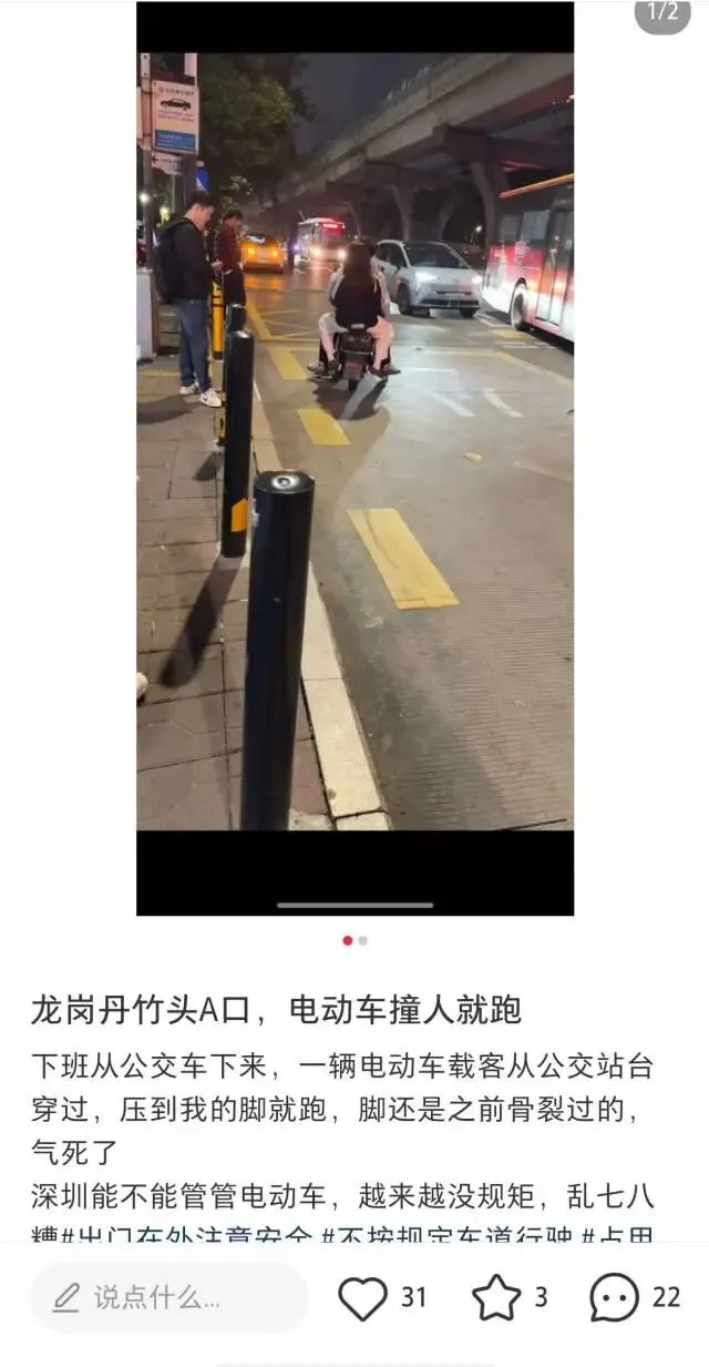 “能不能管一管电动车!”在小红书等社交媒体平台,关于电动车的吐槽帖也不胜枚举。不少网友发布了自己被电动车撞到后逃逸的帖子,评论区引发网友的共鸣。