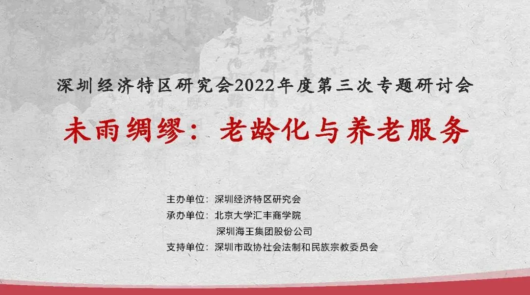 2022年9月28日,深圳经济特区研究会主办,北京大学汇丰商学院智库、深圳海王集团股份有限公司联合承办了主题为“未雨绸缪:老龄化与养老服务”的深圳经济特区研究会2022年第三次专题研讨会。