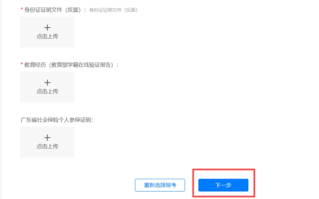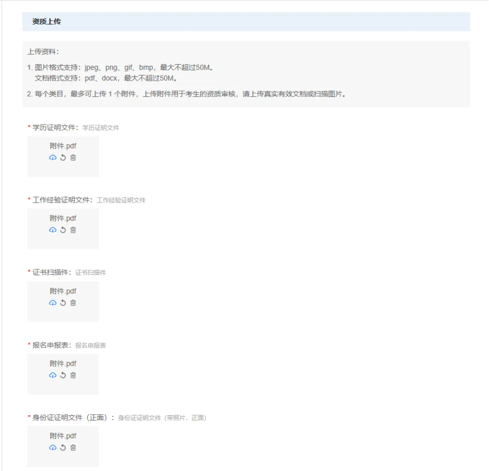考生在报名系统依据申报条件,在网上提交相对应的资料(以下材料只需提供电子版扫描件对应上传,资料格式详见附件2):