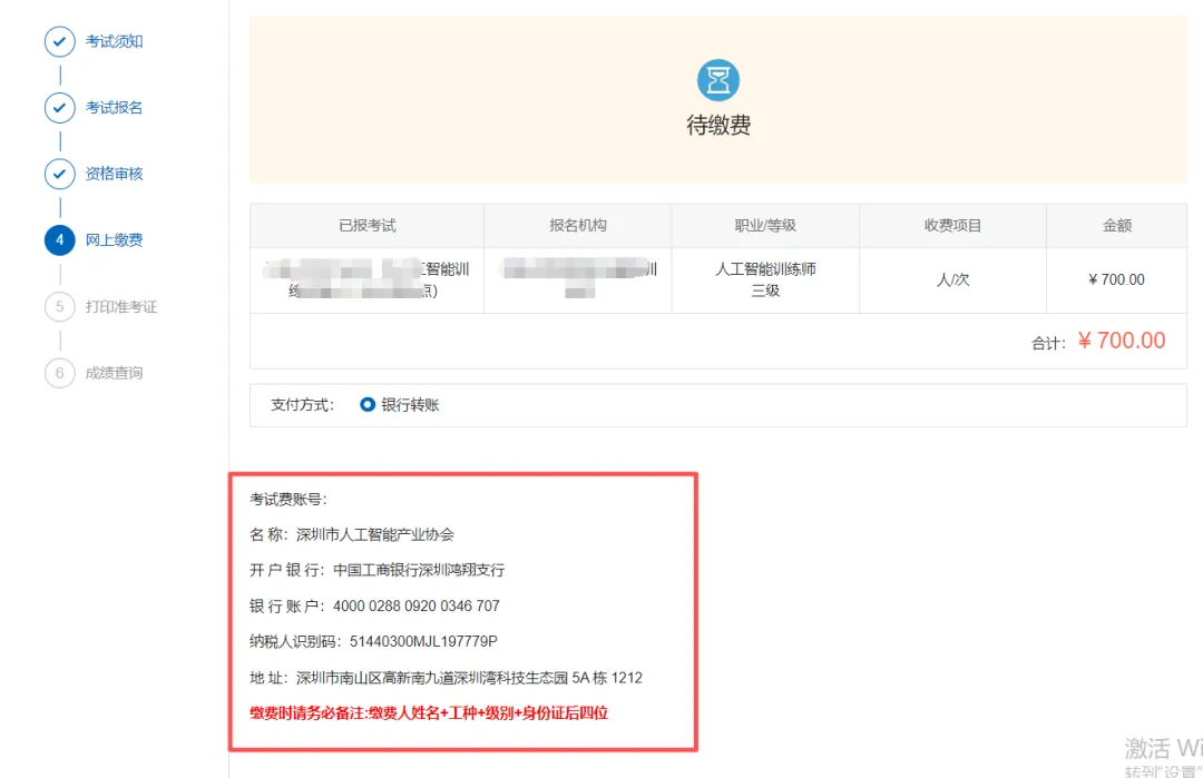 报名审核通过后即可缴费(注:通过对公账户进行缴费。缴费前,请确认已在广东政务服务网用报名码完成实名认证并报考审核通过,否则无法参加考试。)