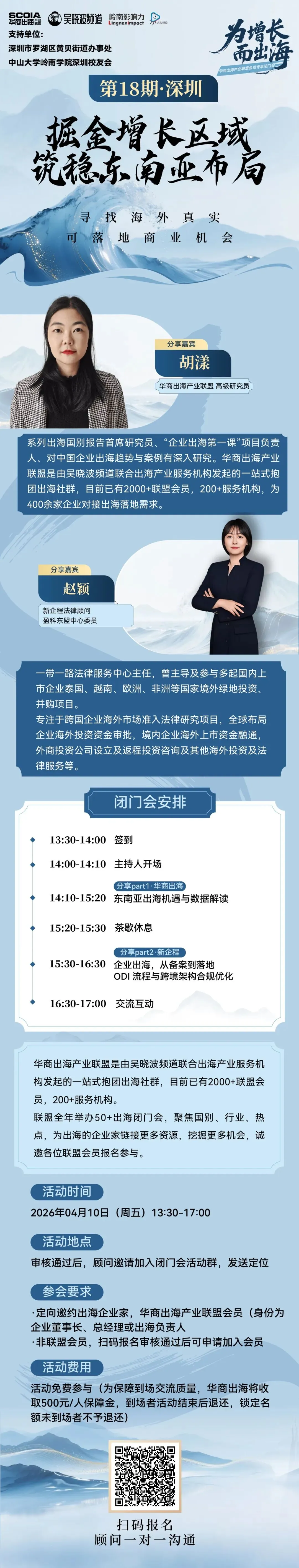 邀请资深专家,用一个下午的时间,为您讲透东南亚 ODI 全流程与财税风险管控。扫码报名,活动助理一对一确认席位!