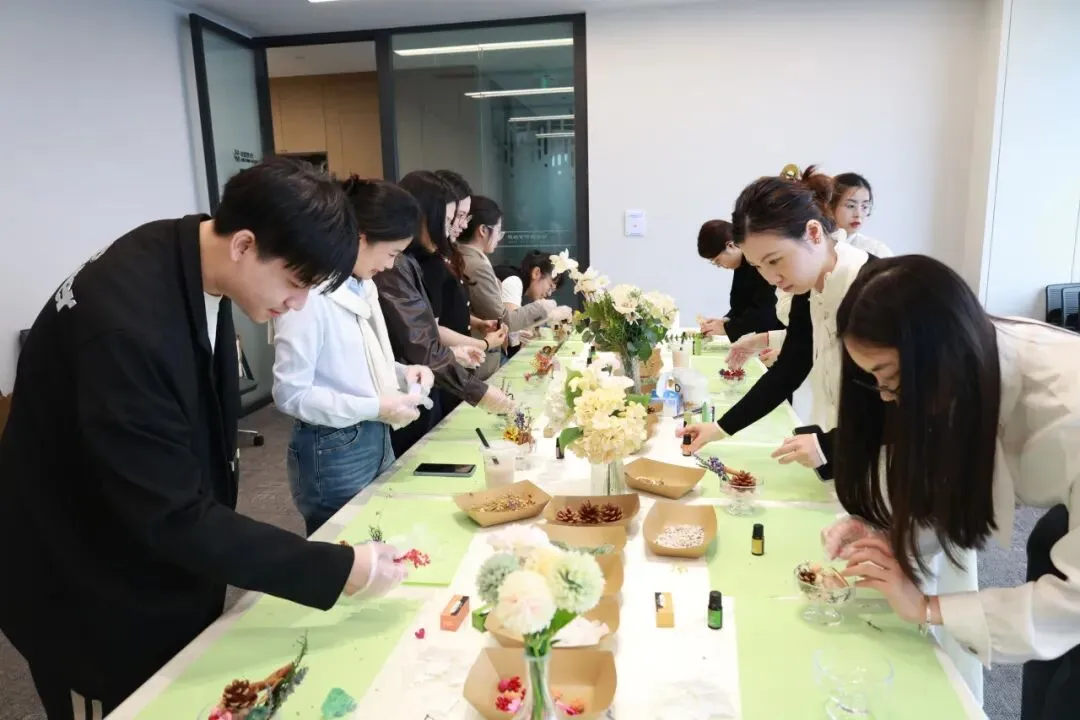 活动尾声的手工制作水晶香薰环节,让平日里严谨办案的律师们,暂时卸下工作的疲惫,在专业老师的指导下,和大家在一起,挑选水晶、搭配干花、调试香气,精心制作专属的水晶熏香。欢声笑语间,不仅亲手制作出了精美的水晶香薰,更拉近了彼此的距离。