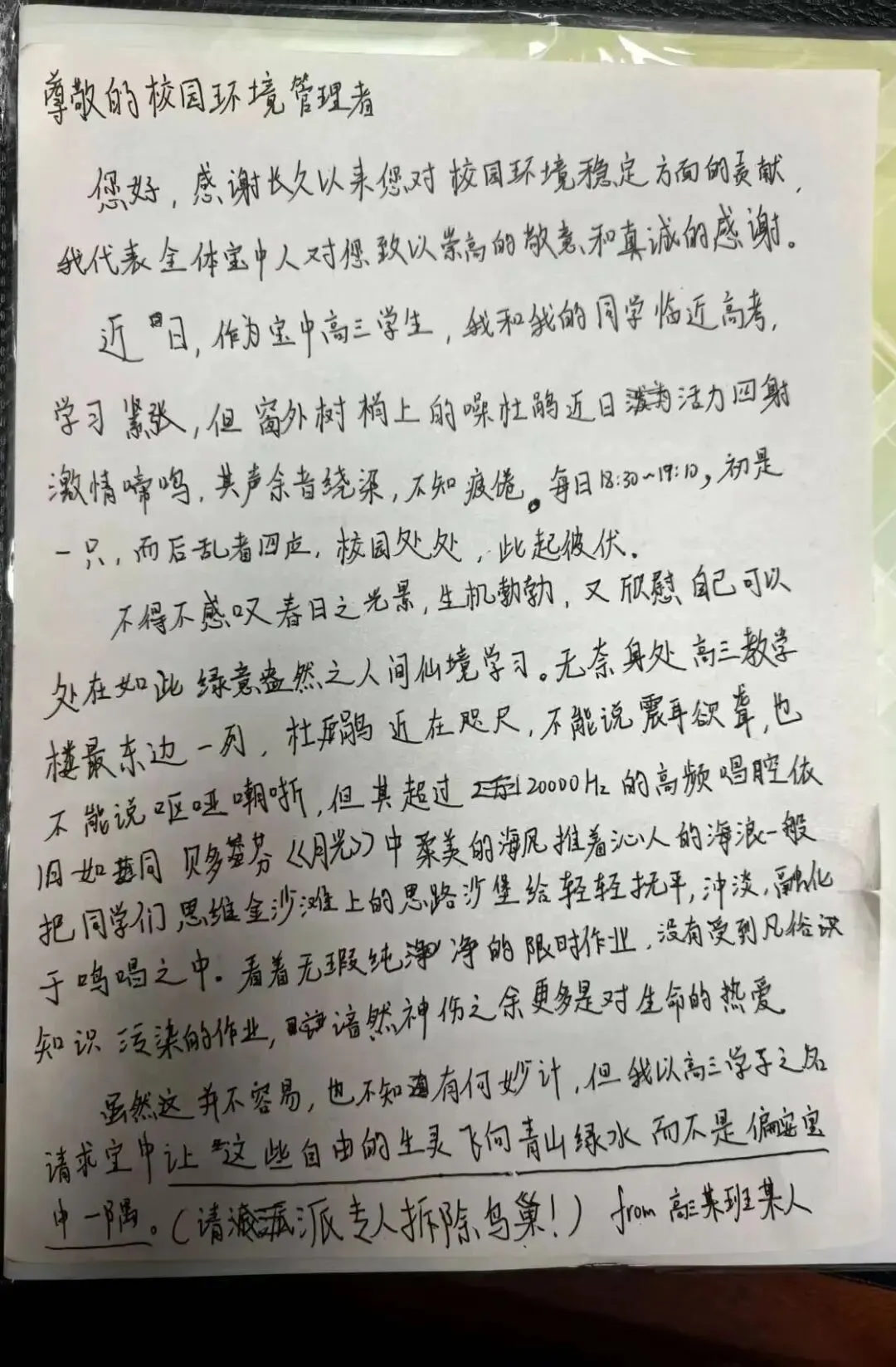 (学生写信请看下图)