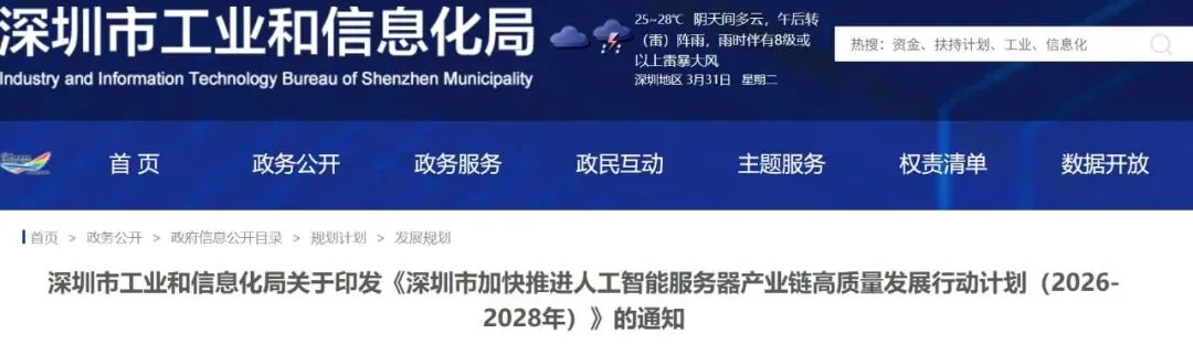 深圳市加快推进人工智能服务器产业链高质量发展行动计划(2026-2028年)