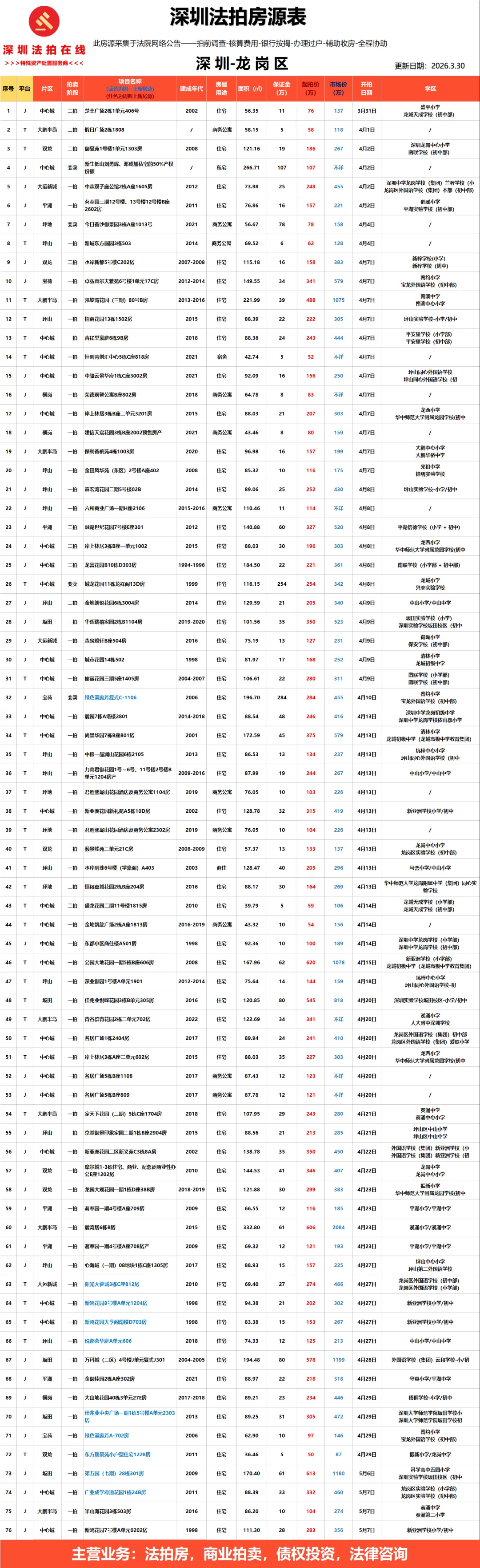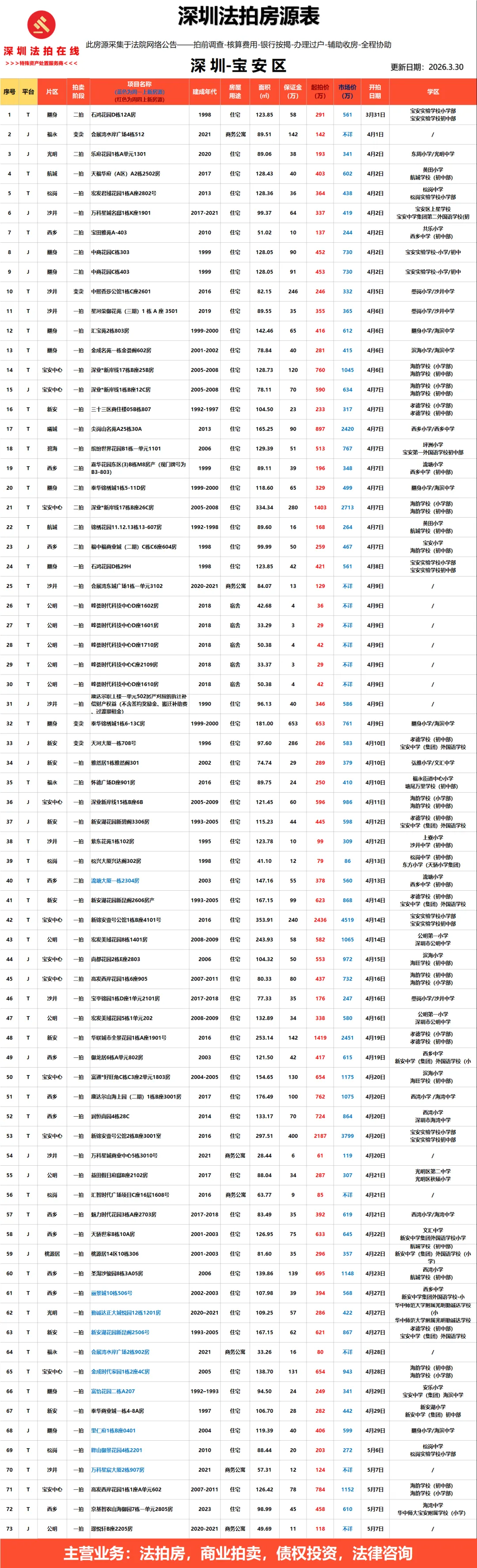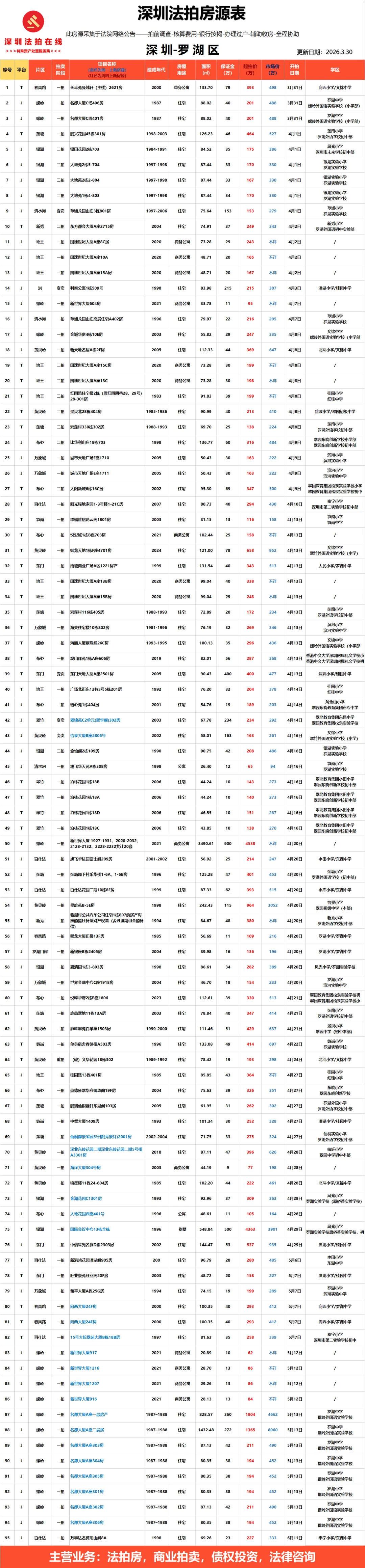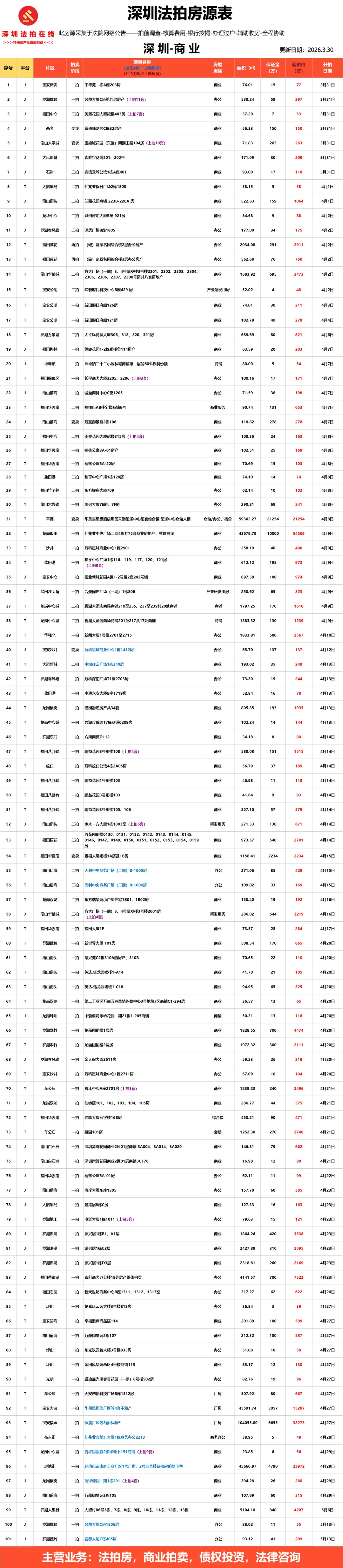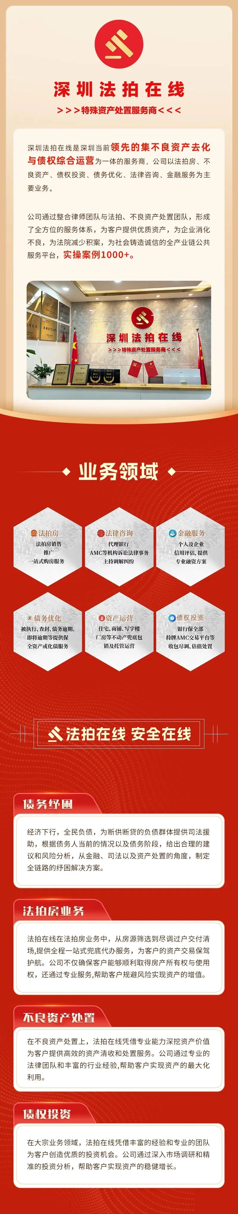 法拍房能比市场价便宜20% - 50%,深圳法拍在线为您免费提供尽职调查,协助您挑选房源、排除风险、竞价策略、合理缴税;深圳法拍在线及其律所广东勤润律所平台包房源筛选、尽职调查、竞拍策划、按揭贷款、办证过户、清场收房、等一条龙服务。专业团队,律师指导,让您安心捡漏法拍房。