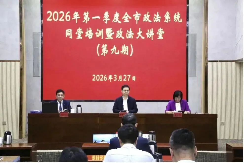 本次同堂培训由深圳市委政法委牵头、深圳市司法局承办,并与政法大讲堂同步举行。此次培训活动是深圳市政法系统贯彻落实习近平法治思想和《中国共产党领导全面依法治国工作条例》《法治中国建设规划(2026-2030年)》决策部署的有力举措。深圳市委政法委、市中级法院、市检察院、市公安局、市司法局相关分管领导及90余名法官、检察官、警官和律师代表现场参加培训。培训还通过视频方式连线到各区,市区两级政法单位共计400余人参加培训。