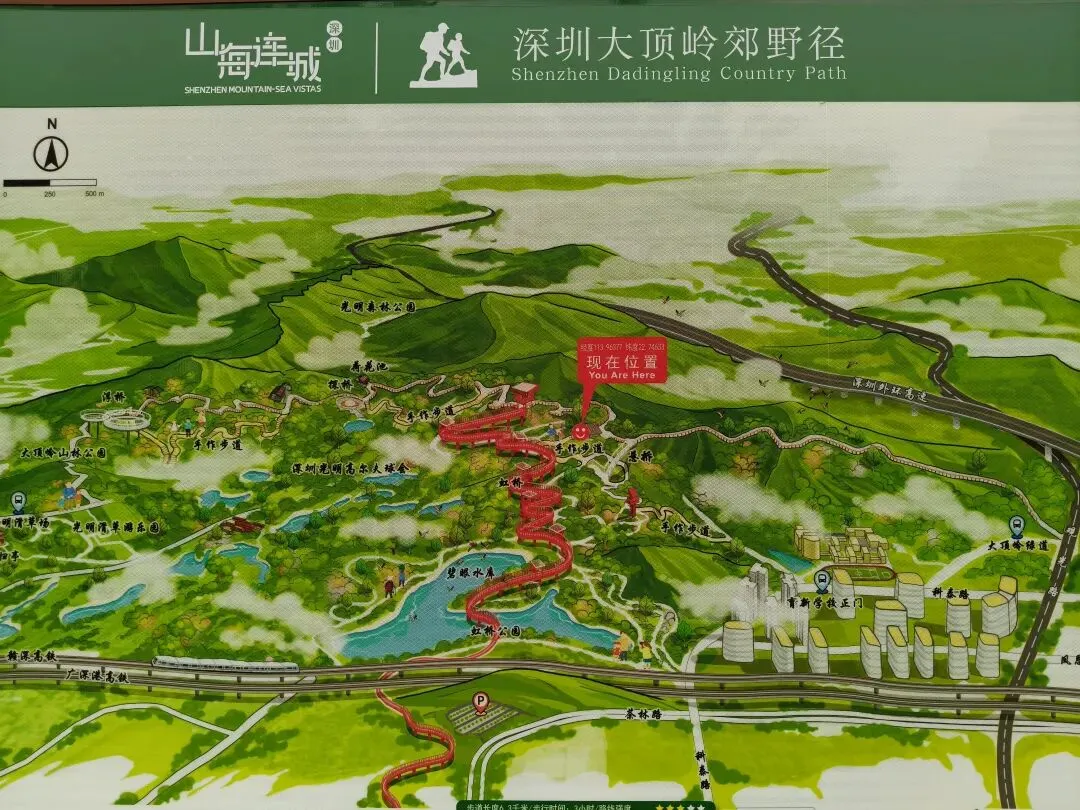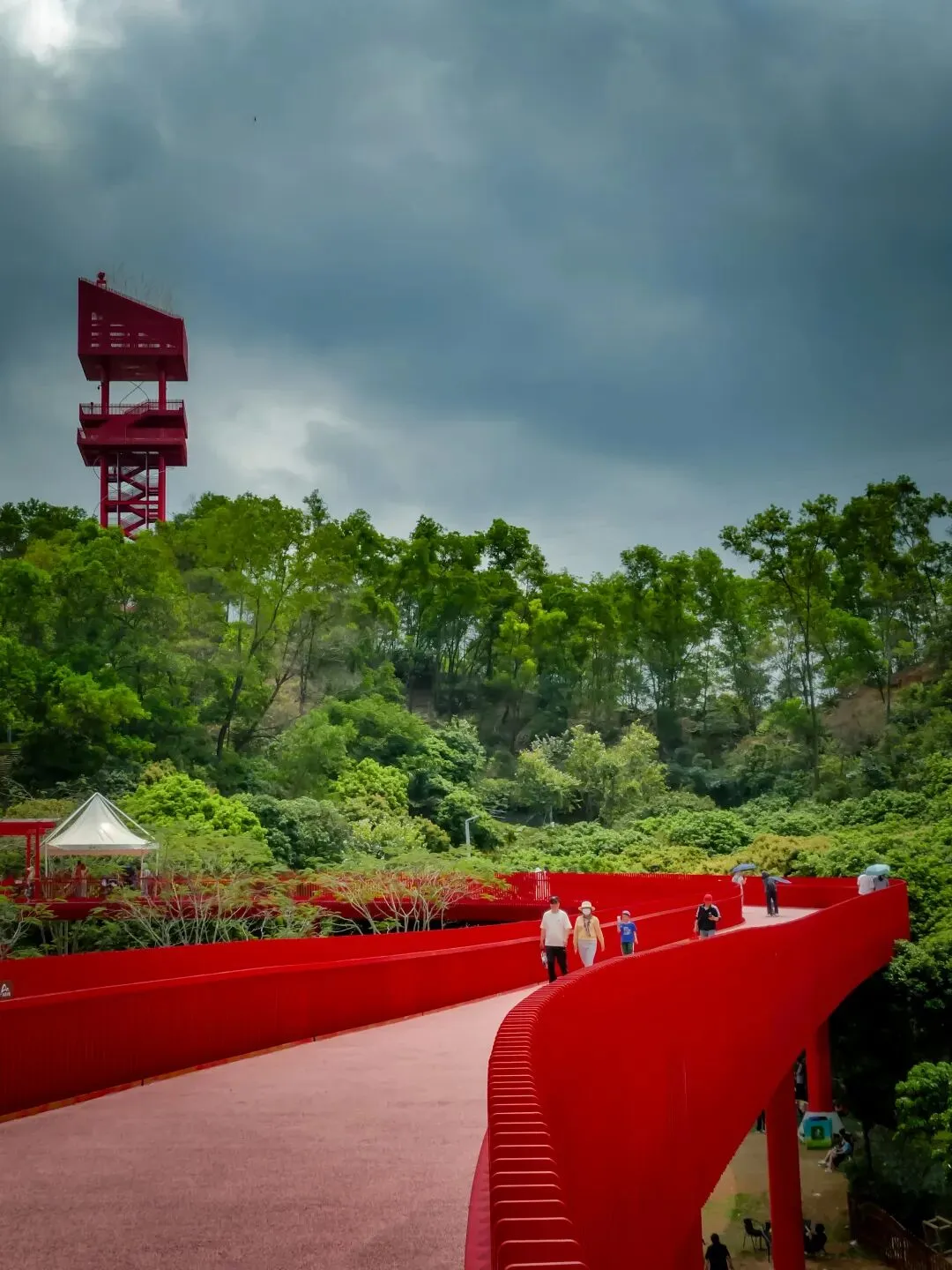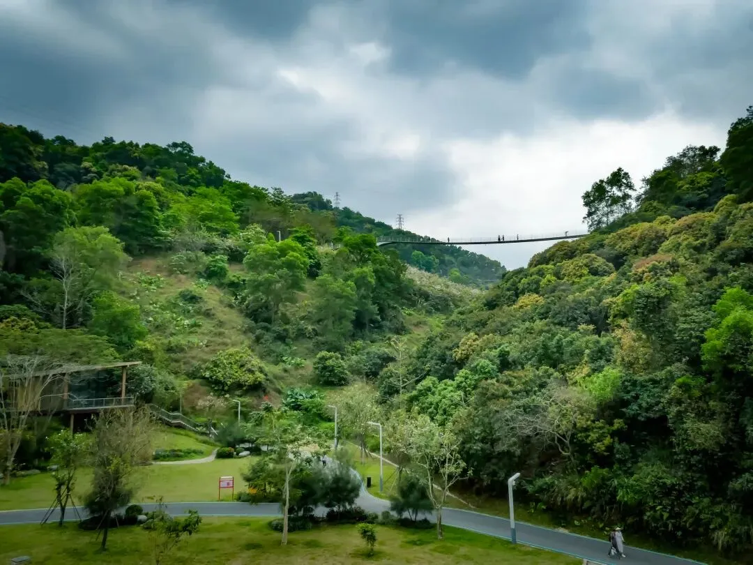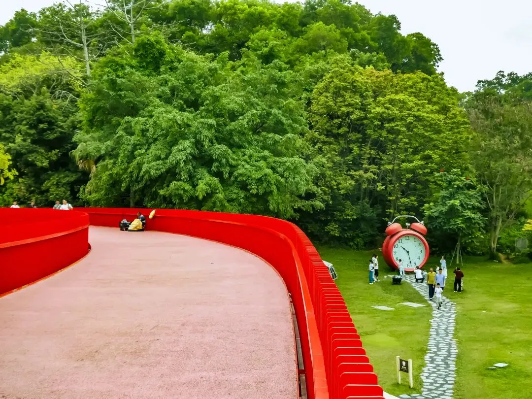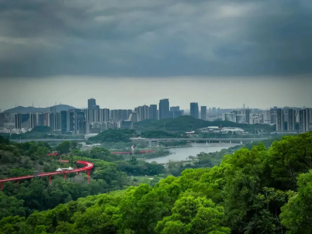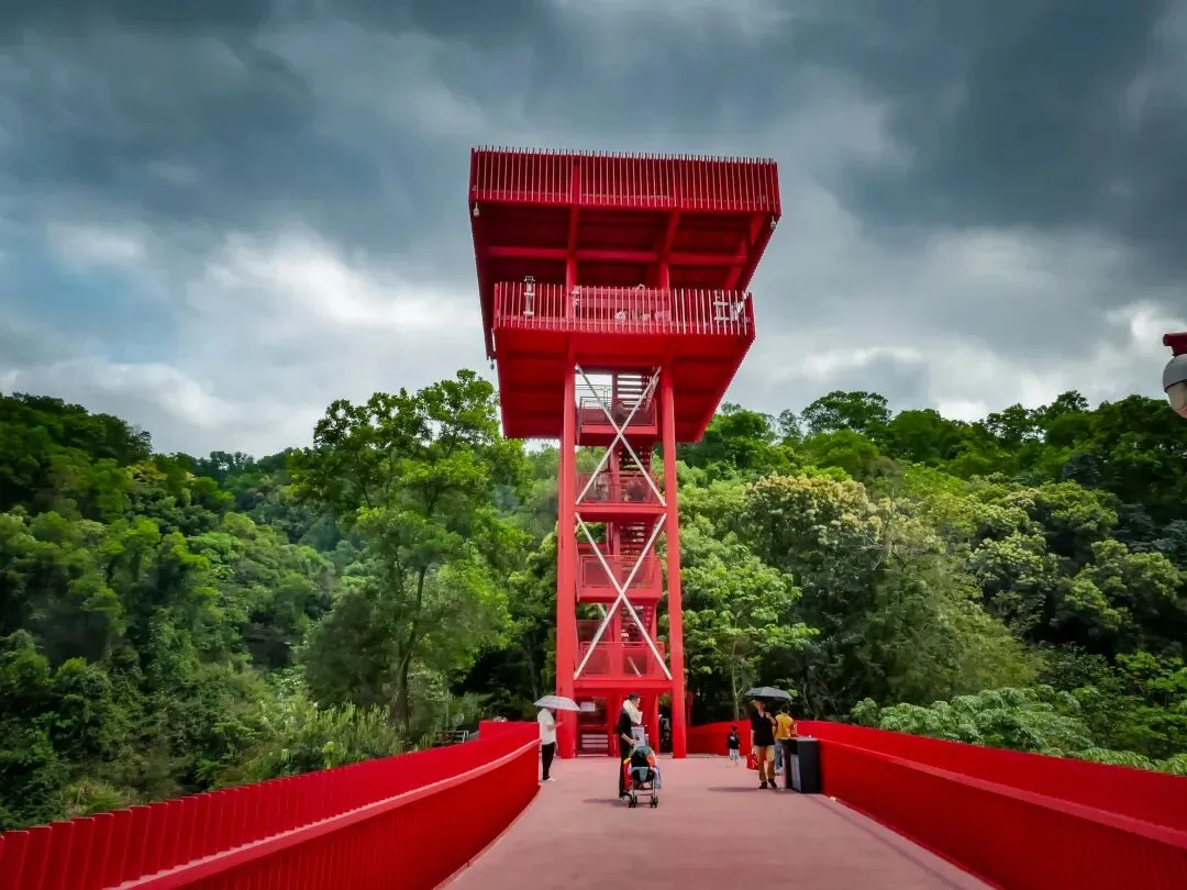 登上塔顶,红桥全景尽收眼底,它如一条红色游龙,穿行于漫山绿意之中,远方则是光明新区的城市轮廓。此情此景,方知深圳不仅有速度,更有藏于山野的温柔。