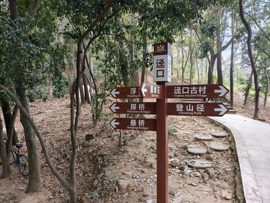 前往吊神山的路径岔路口极多,强烈建议提前在户外助手APP上下载好轨迹导航。总体方向是跟着路牌指示,朝“吊神山”和“白花客家文化中心公园”方向走。