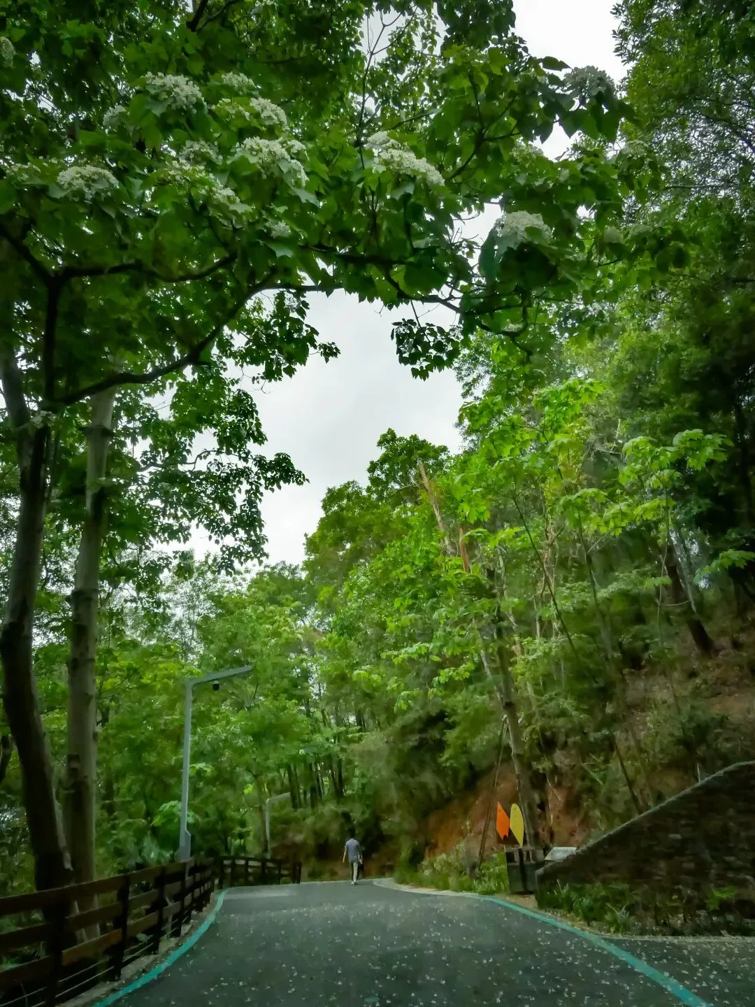 大顶岭的绿道旁,梧桐树已开出白色的花,还有其他不知名的野花点缀其间,春天的气息扑面而来。