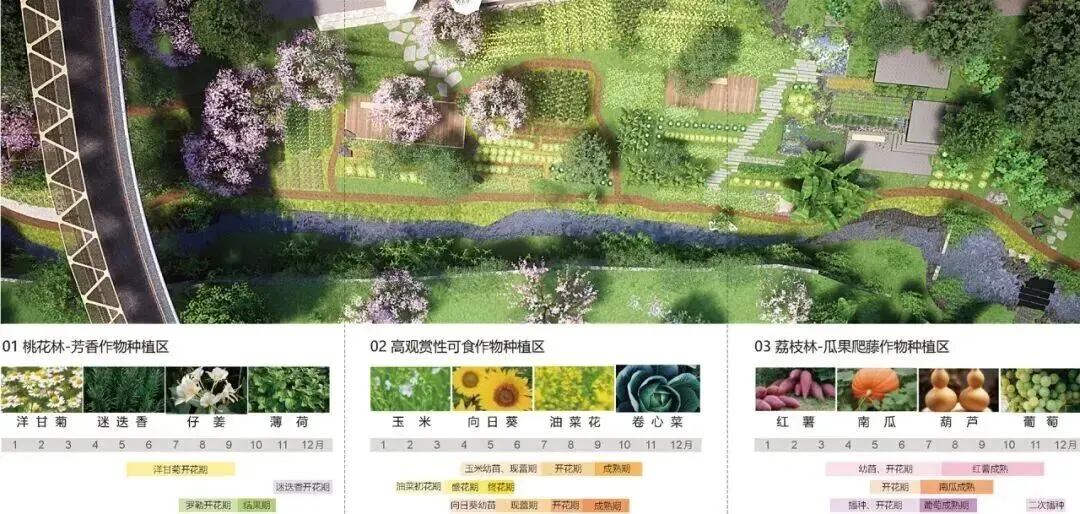 校园的原生河道区域保留了野趣十足的植物和农田肌理,特别是学生活动中心前的梯田式“可食地景”,平时是四季可赏的农业景观,师生可以亲手种植、亲近土地;在极端条件下,它还能提供应急食物来源。