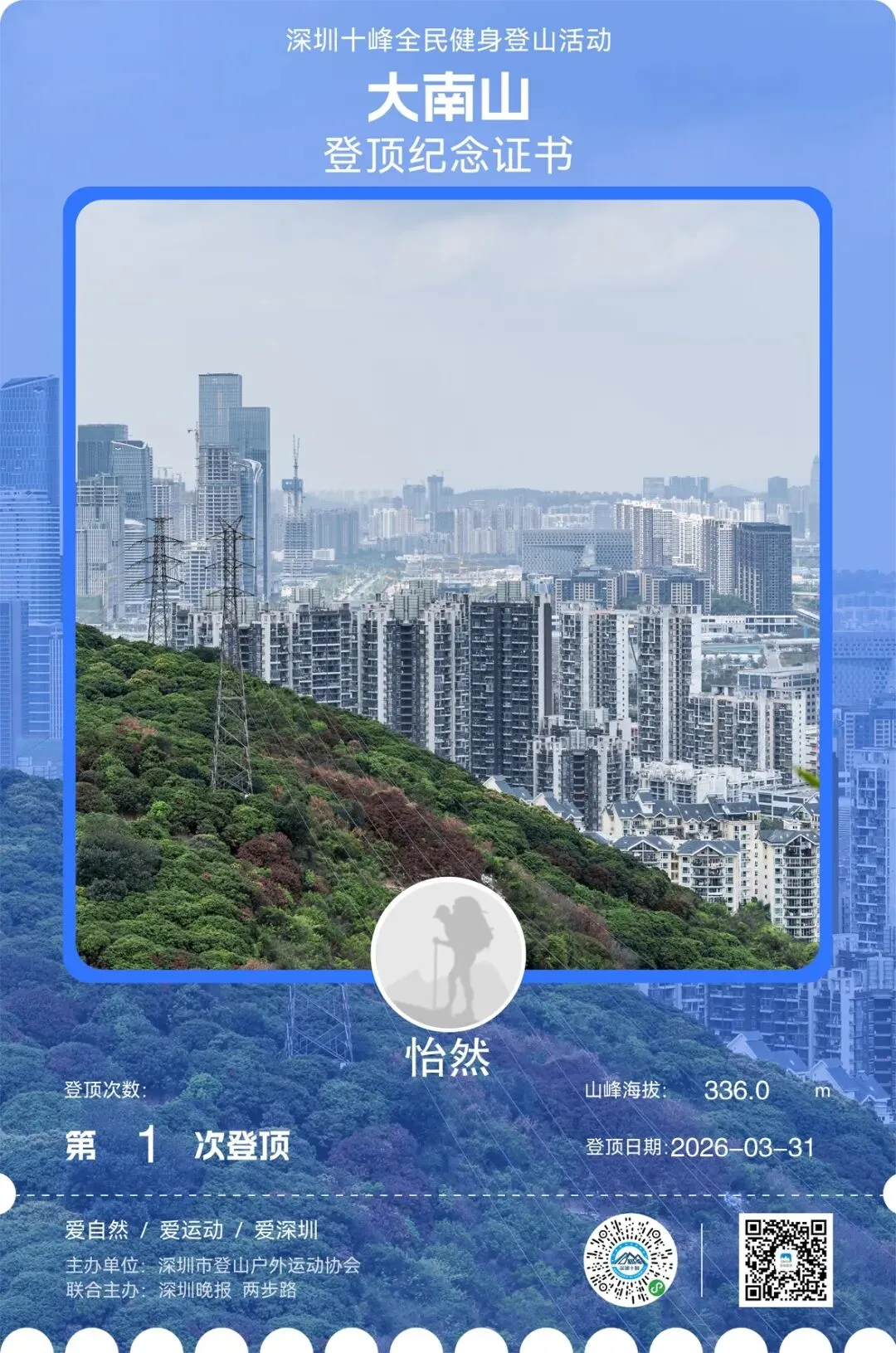 2026年3月31日,我打卡了深圳十峰之六——大南山。
