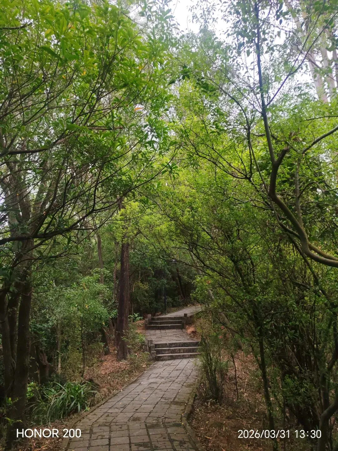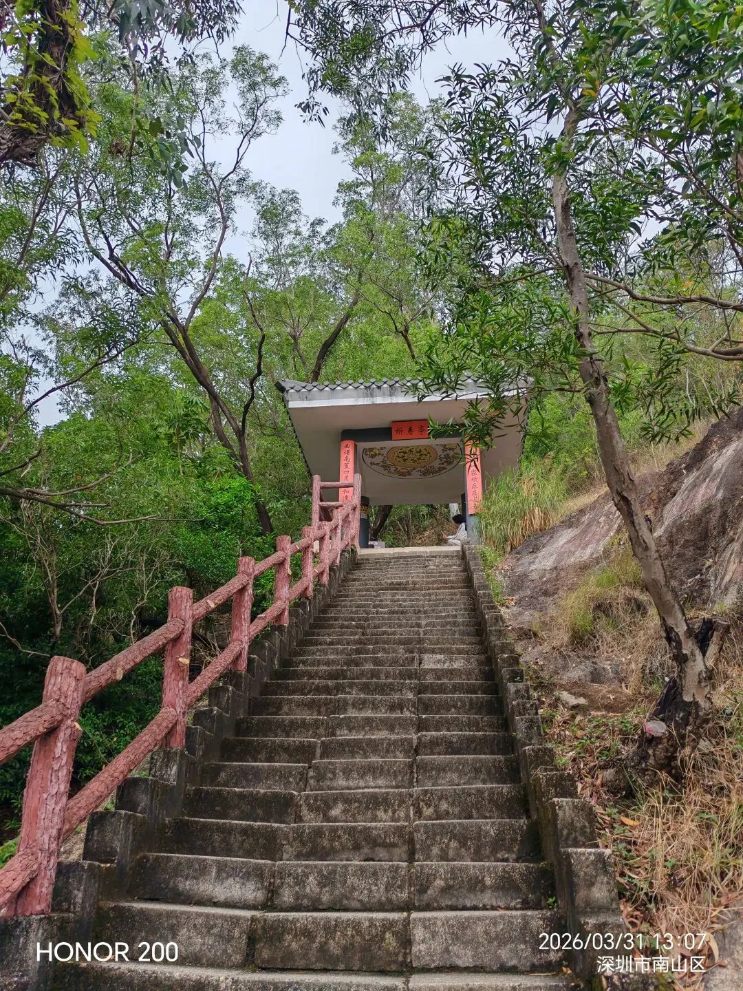 说实话,来深圳十几年,我从来没有一个人爬过山。平时要么跟着队伍,要么约上朋友,说说笑笑间,山路也就不觉得长了。今天却是从头到尾,只有我一个人的脚步声在石阶上起落。鞋底踩在石板路上,每一步都听得清清楚楚。害怕吗?有一点。不是那种明确的恐惧,而是一种说不上来的空落——好像这座山里只剩下我,而我正在做一件不太熟悉的事。