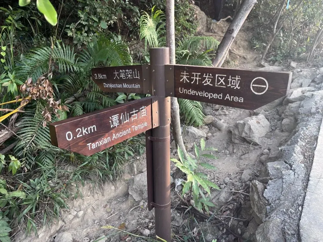 核心节点:白沙湾起点→谭仙古庙→三杆笔→大笔架山(深圳第5高峰,海拔717米)→火烧天→土地庙→金龟村→绝望坡→田心山(深圳第7高峰,海拔684米)→水祖坑终点。