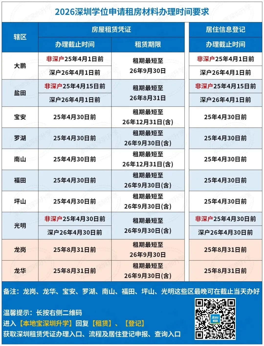 深圳10区都会规定房屋租赁凭证的租赁期限,房屋租赁凭证的租赁期限一定要跨越各区教育局规定的时间要求(要求详见上表)