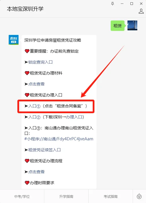 在“深圳市住房和建设局”公众号,或者进入【本地宝深圳升学】回复【租赁】获取租赁凭证线上办理入口