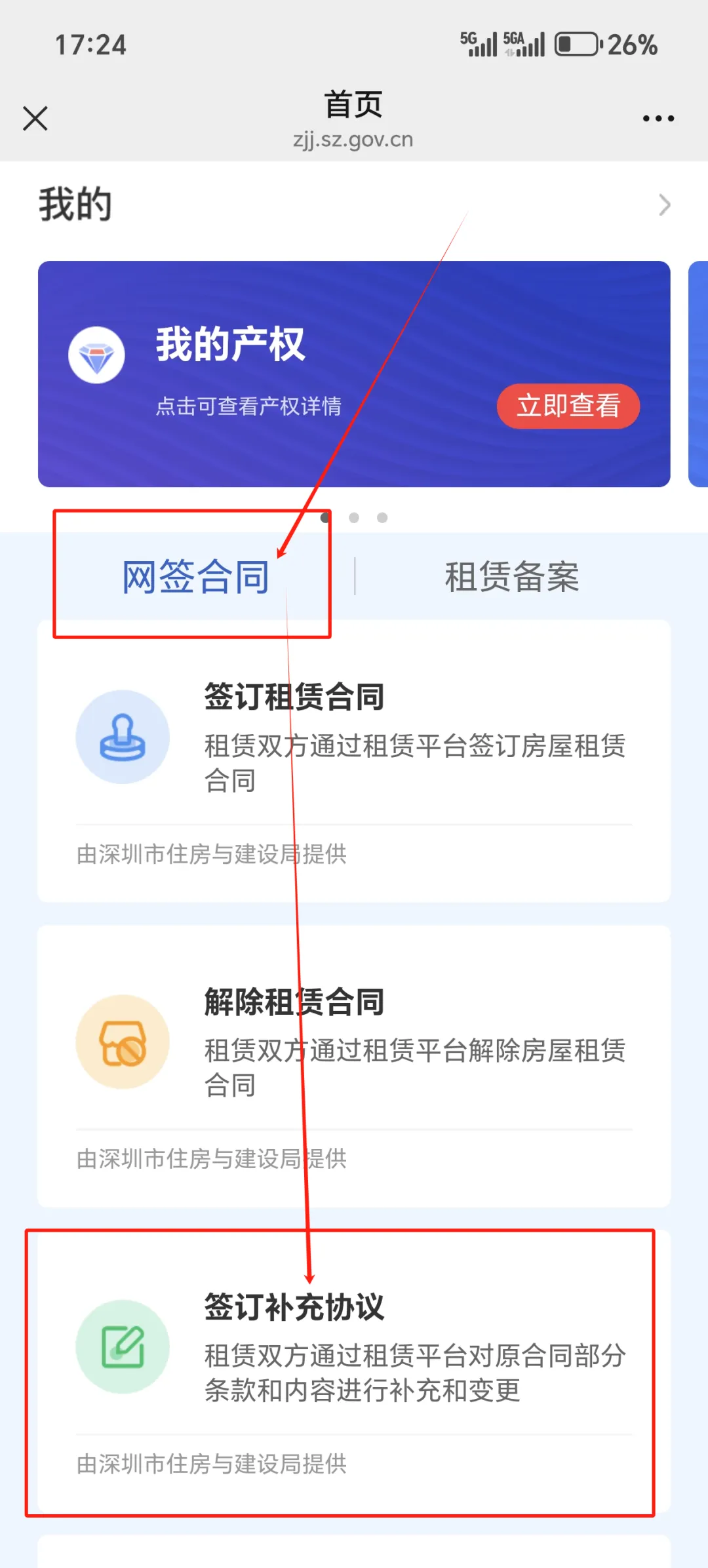 在深圳市住房和建设局公众号点击“业务办理”,按照下图流程找到“签订补充协议”入口