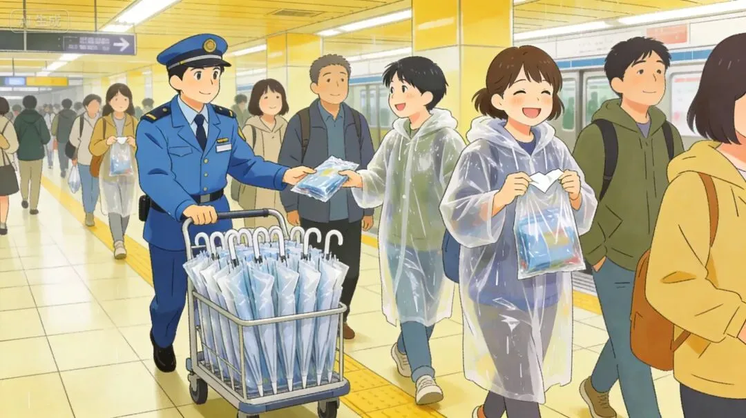 深圳地铁为未带伞的乘客免费发放了雨衣