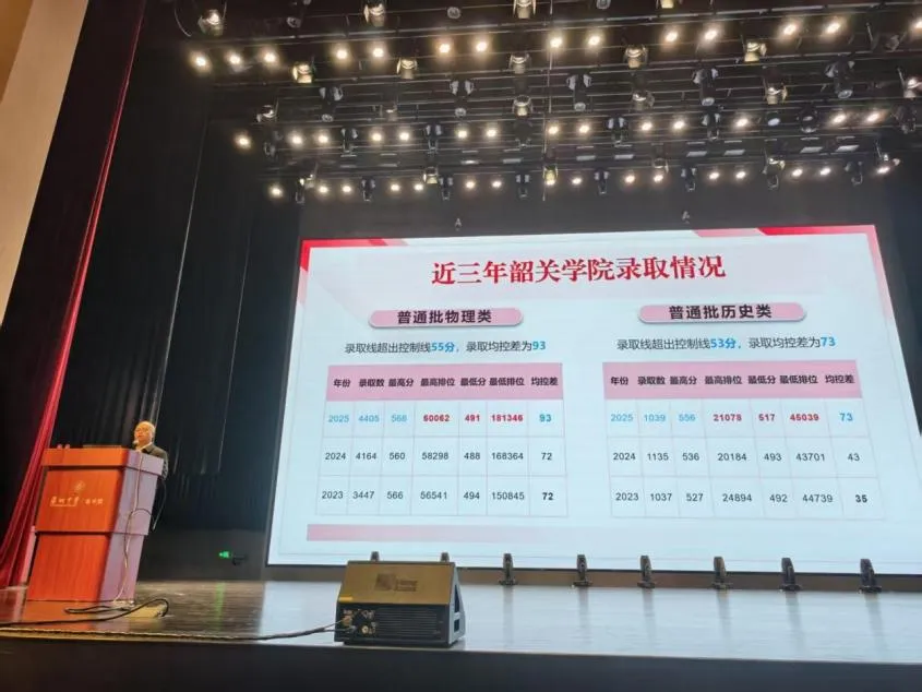 宣讲会上,肖著华围绕韶关学院的办学底蕴、学科建设、人才培养模式等内容展开讲解,重点梳理了学校各类招生政策与报考要点,结合旅游与地理学院特色专业优势,向在场学子发出报考邀请,让大家对韶关学院有了更直观、全面的认知。