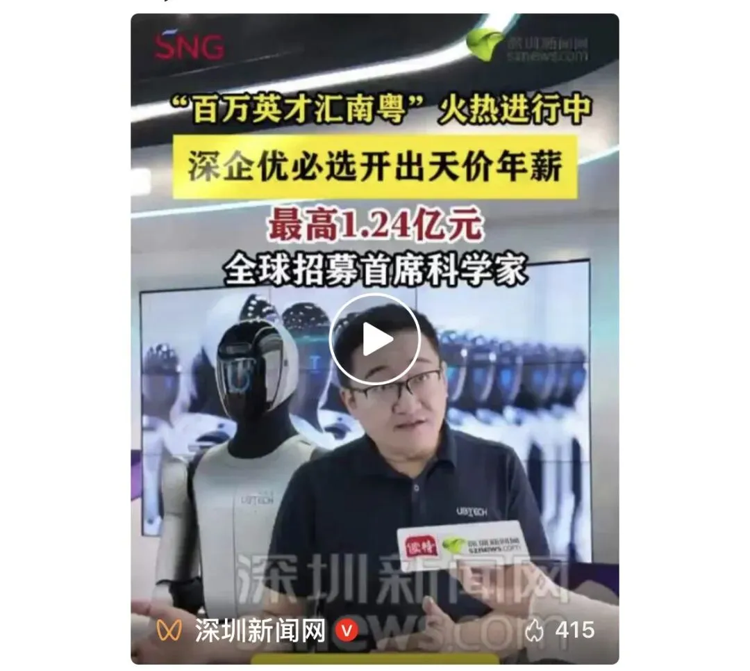 3月的深圳招聘会,优必选成了绝对主角。岗位要求写着:定义技术路线,突破核心算法,推动大规模落地。薪酬区间:1500万到1.24亿。