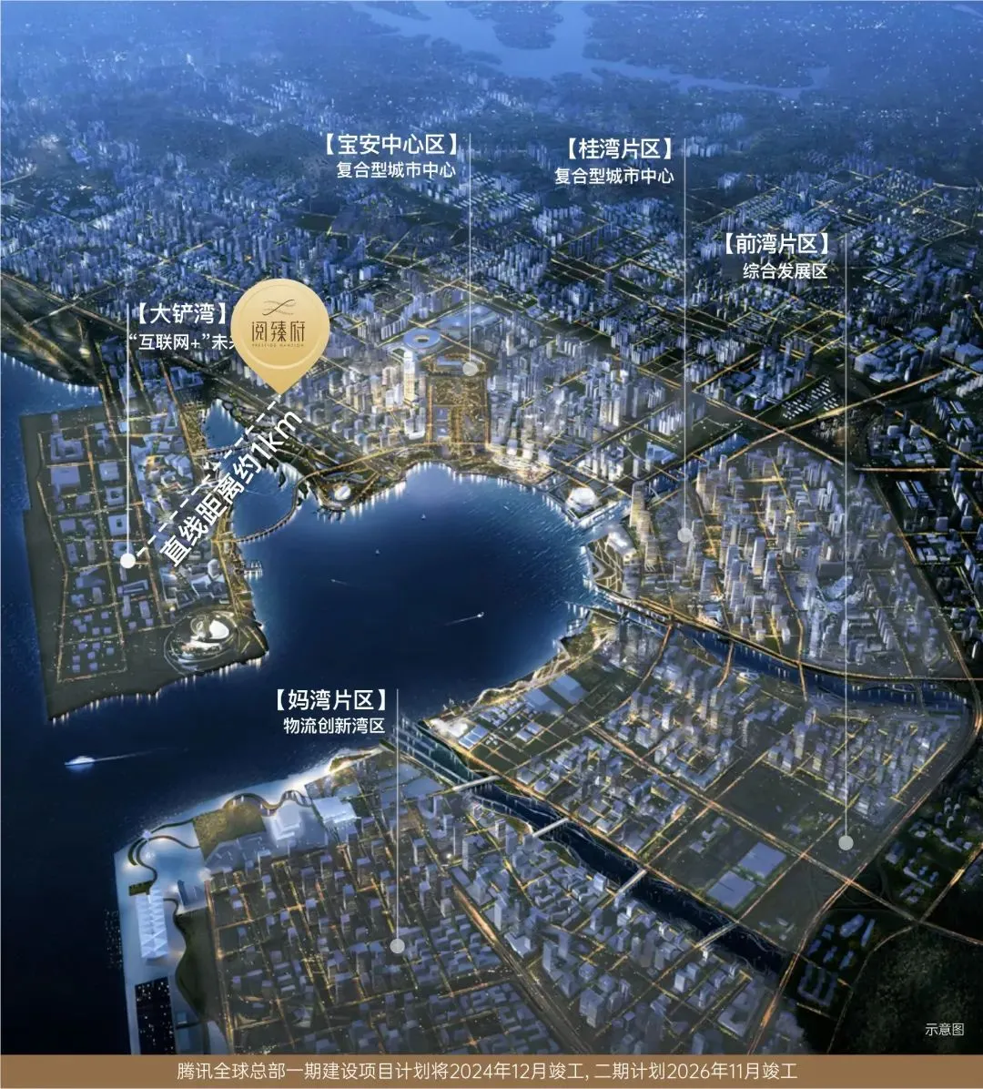 腾讯全球总部,择址宝中大铲湾,总投资约370亿。未来将有约9.1万名通信技术精英+6.3万人以上精英人才,助力片区价值腾飞。