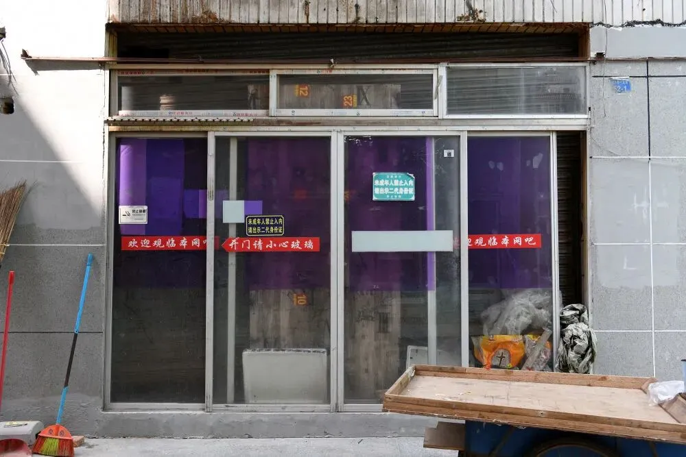 景乐新村里一家已关门停业的网吧(2月11日摄)。