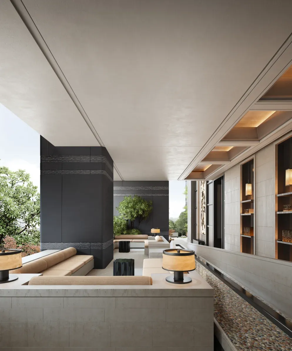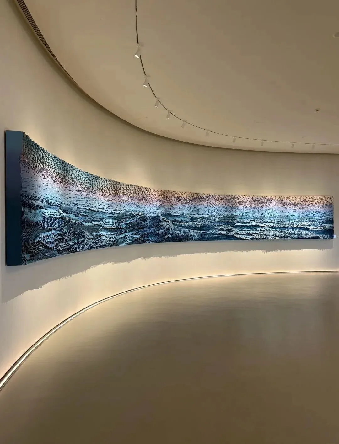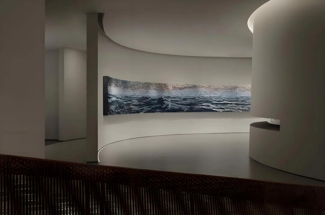 信悦湾的售楼部,从一开始就跳出了传统营销中心的框架,以“滨海艺术会客厅”为定位,将项目的美学基因提前呈现,每一处设计都在诉说着“与海共生、与艺术共鸣”的理念。