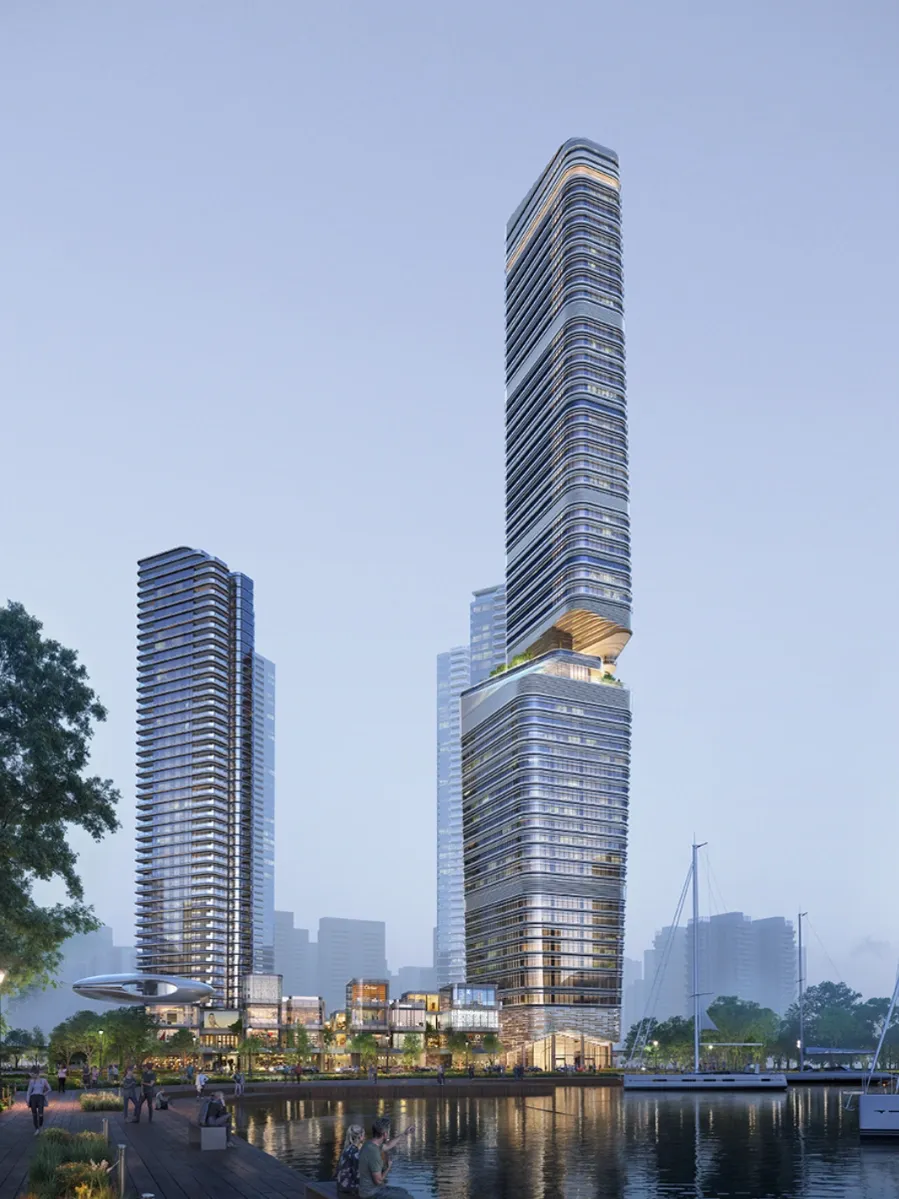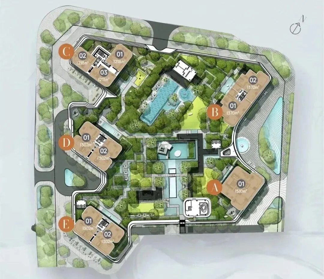 楼栋高度层次分明:C栋约192米(54层)、D/E栋约183/162米(49/43层)、B栋约166米(47层)、A栋约166米(43层),不仅形成了丰富的湾区天际线,更让不同楼层的观景视野互不干扰。最大约85米的楼间距,搭配通透式塔楼布局,既保障了每一户的通风与采光,也最大限度保护了社区的私密性。全系户型面积段为211-510㎡大平层,无小户型、无过渡产品,精准筛选高净值人群,避免圈层混杂,让社区氛围更纯粹。