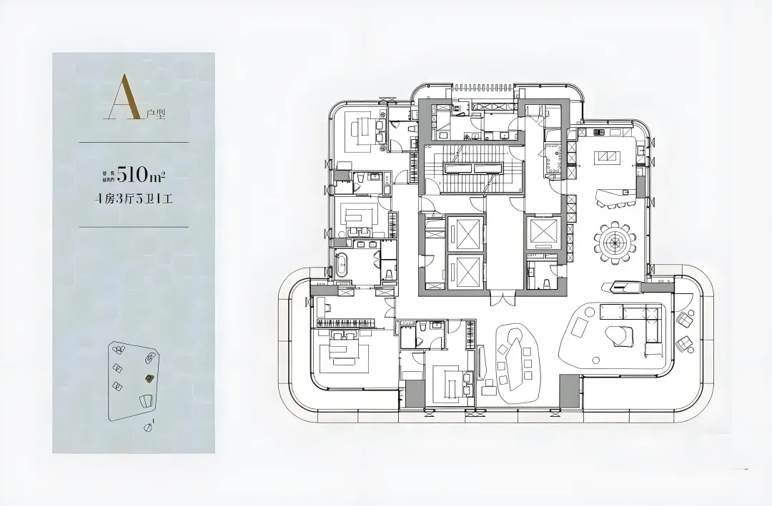 A栋|510㎡ 5+1房3厅5卫(楼王·一层一户)
