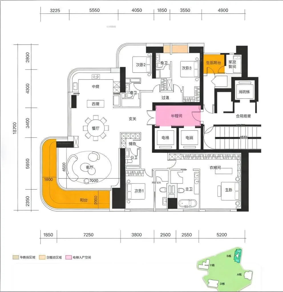 梯户比5梯2户,独门独户设计,层高3.5米,东南向拥有270°环幕海景。全套房设计,每个卧室都配备独立卫浴,最大限度保障家人的私密性;约2.4米进深的L型环幕阳台,270°无遮挡观海,站在这里,整个深圳湾的美景都能尽收眼底;私家电梯厅+独立玄关,双重私密保障,彰显顶豪专属的尊崇感。