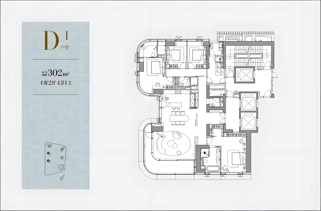 D/E栋|302㎡ 4+1房2厅4卫(主力户型)