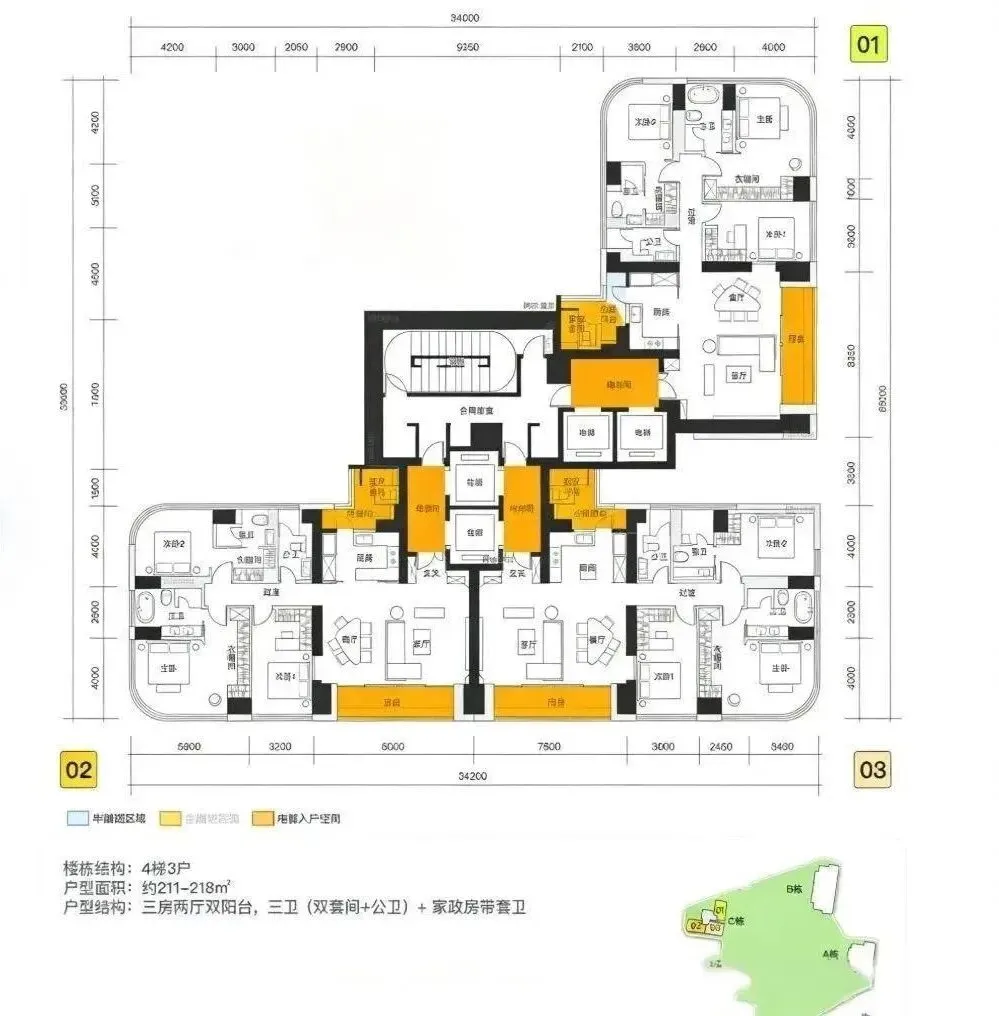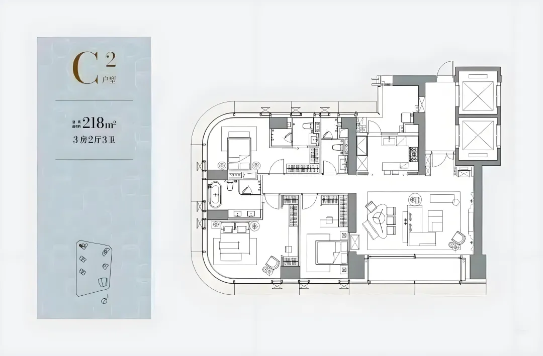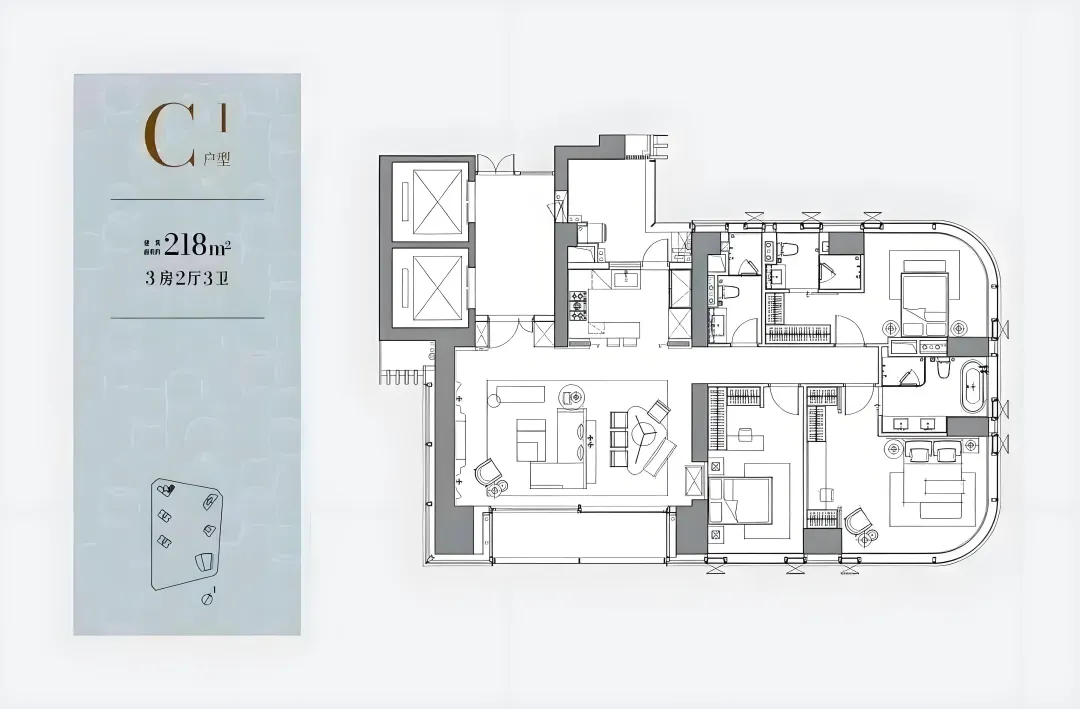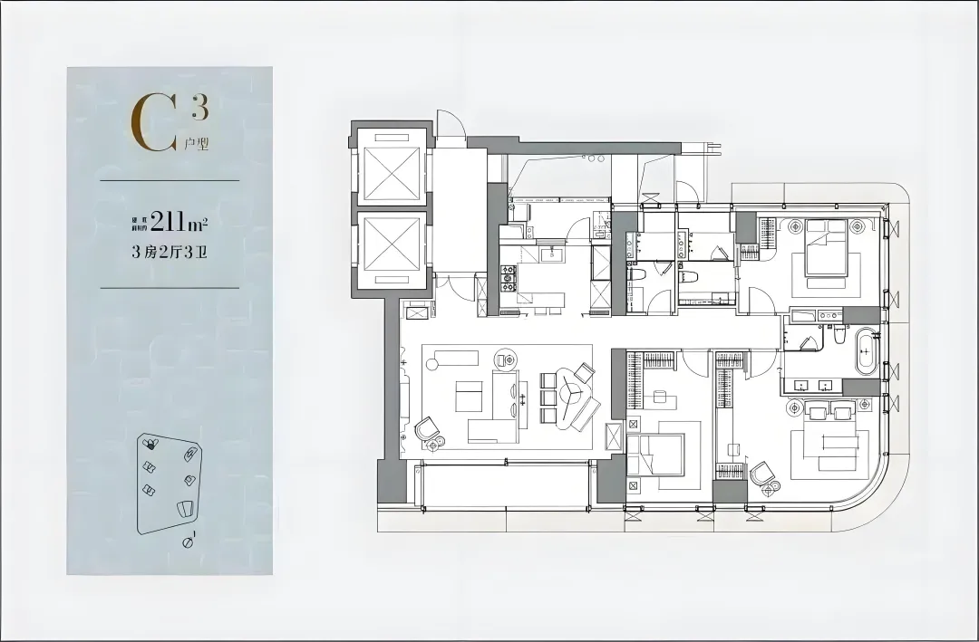 C栋|211-218㎡ 3+1房2厅3卫(入门顶豪)