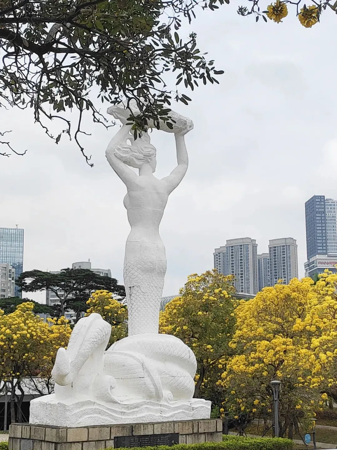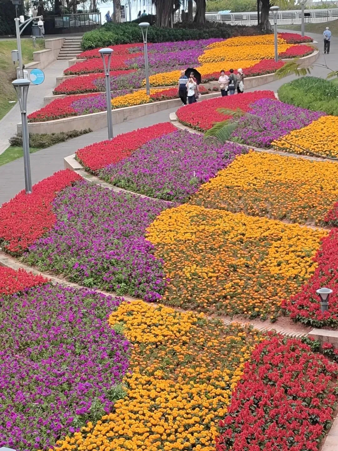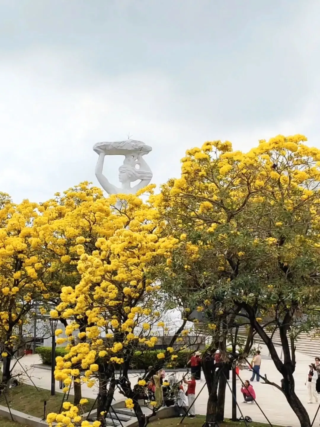 近期蛇口的黄花风铃木刷屏了,虽然面积不算大,但满树金黄的繁花无叶相伴,美得一塌糊涂。花树下都是市民游客各种摆拍。在蛇口比较成规模的黄花风铃木有两处。一处是女娲滨海公园,另一处是人才公园,其他路边也有零星几株如前海一些道路两边也有,开得很旺盛。但公园里的黄花风铃木更集中,后再还可顺便逛逛公园的其他的景点。而在海上世界广场往女娲滨海公园的方向,就在女娲娘娘前面道路两边的小坡上,分列两边都是黄花风铃木花。笔挺的树枝上挂满繁花。这些角度都是从上面的桥上拍到,或从后面远处拍到女娲的背影。欣赏了黄花风铃木别忘了这块花田,现在花正开着,由一块块各三种颜色的时令花卉组成,从上面往下看,有点象梯田那样,非常艳丽夺目。旁边的海上世界文化广场风景也是美如画,别错过呢。就在附近。交通: