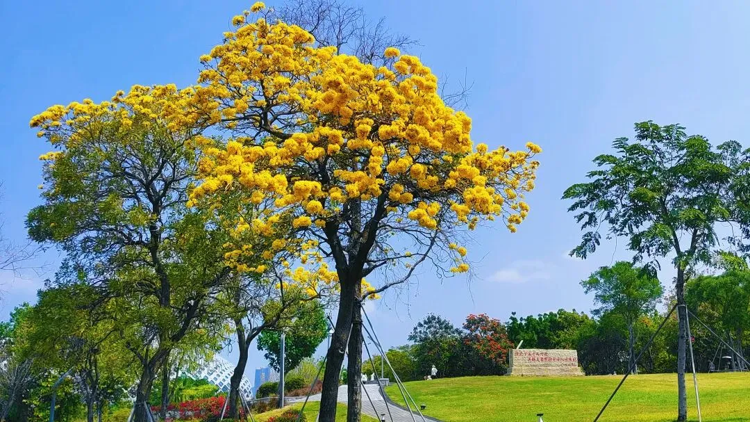 免费游玩!深圳蛇口这片黄花风铃木己到盛花期,地铁直达,很好拍照!