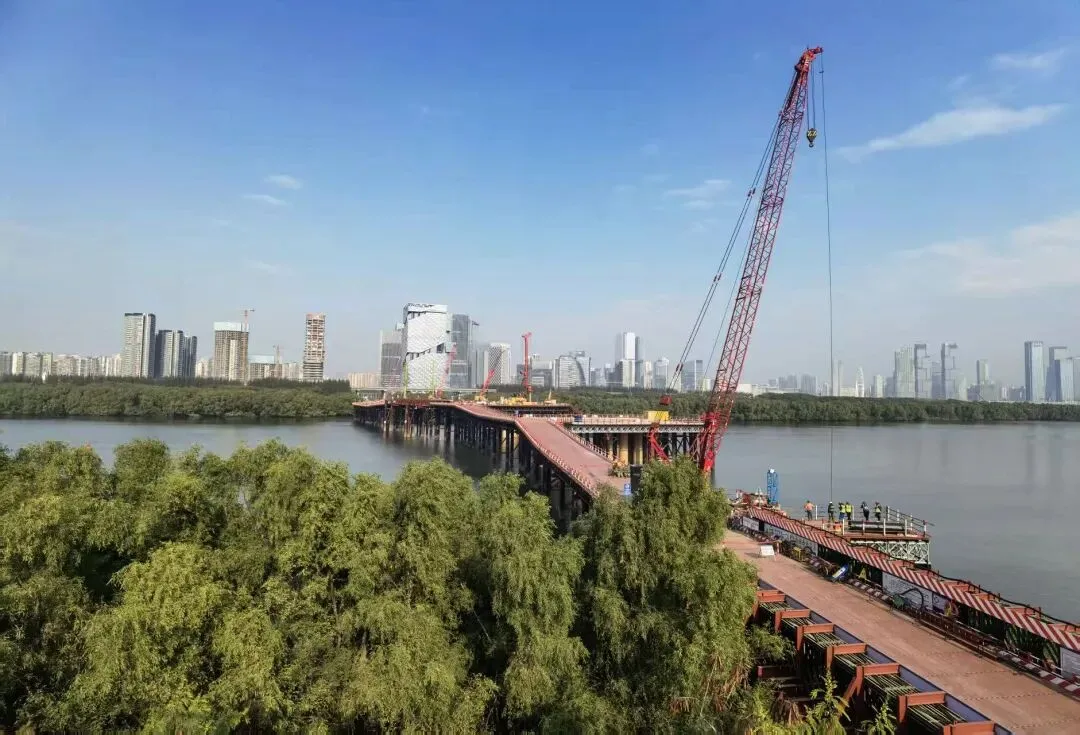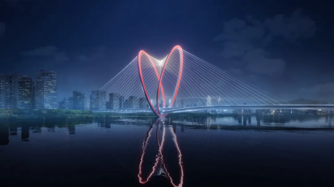 深圳裕安一路西延工程跨海大桥位于深圳市前海合作区大铲湾核心地带,全长约841.3米,规划为双向6车道。作为《深圳“互联网+”未来科技城控制性详细规划》路网核心引擎,该桥梁将连接“互联网+”未来科技城与宝安中心区。大桥主桥采用斜拉桥钢拱塔,呈莫比乌斯环形状,设计新颖;拱塔间斜拉索设置柔性锚环约束结构,创新性高。