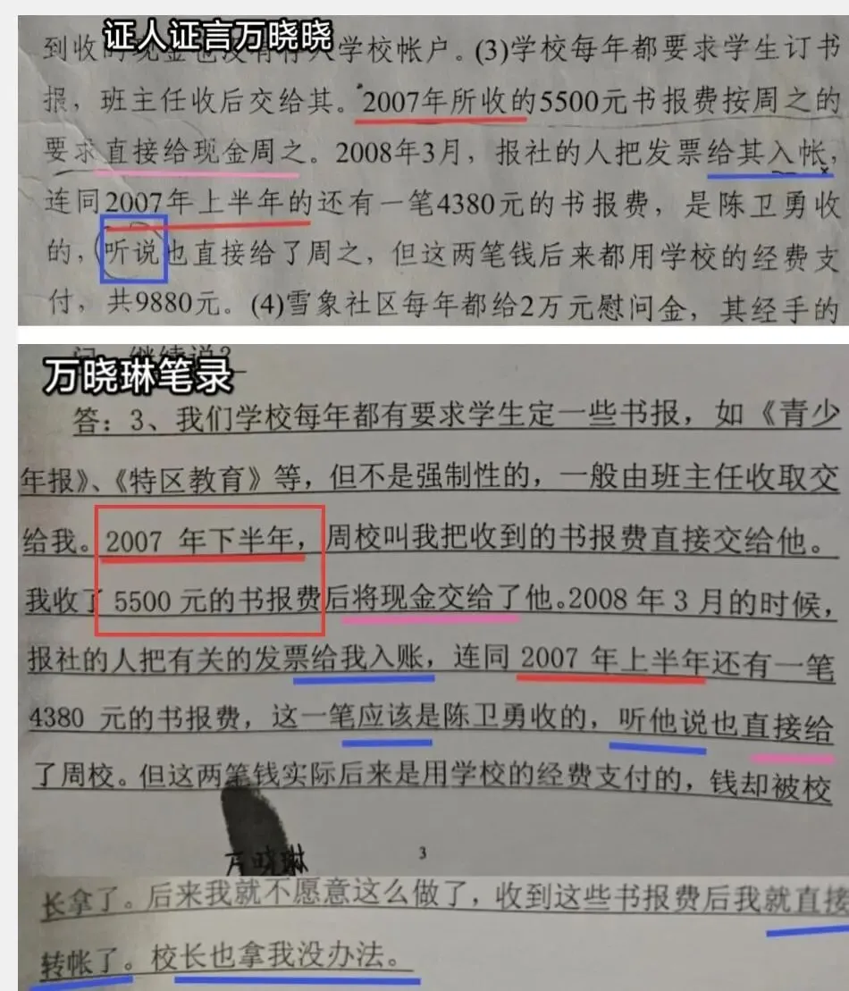 但是,物证书证的单据,却根本上不是证言笔录的“上学期书报费、下学期书报费”,而是“深圳青少报书报费、《特区教育》书报费”(证据4~7:银行存根、记账凭证)。