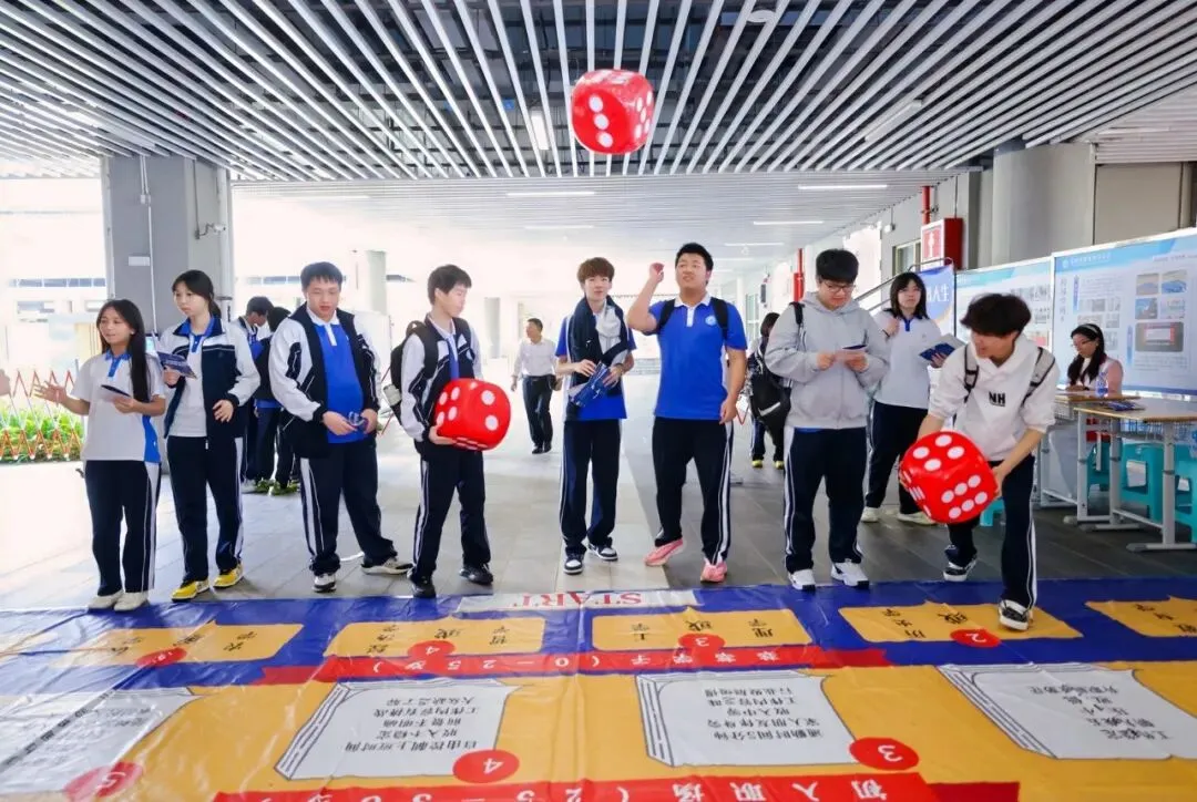 人生需要规划,有方向的前行更有力量。“模拟人生”环节以掷骰子游戏形式,引导同学们沉浸式体验人生不同阶段的关键选择,帮助学生在体验中思考未来,增强对人生路径的认知与规划意识。