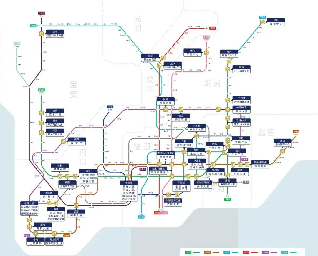 深大、桃园、后海、南油、南油西、大新、铁路公园、前海、荔湾、赤湾、海上世界