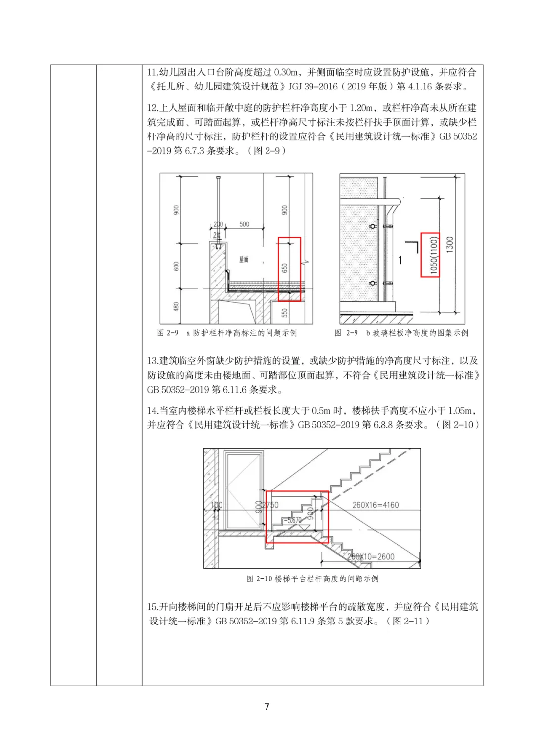 1.3 设计说明中安全防护设计缺少上人屋面、中庭等位置防护栏杆高度的说明,或设计说明的内容与设计图纸不一致