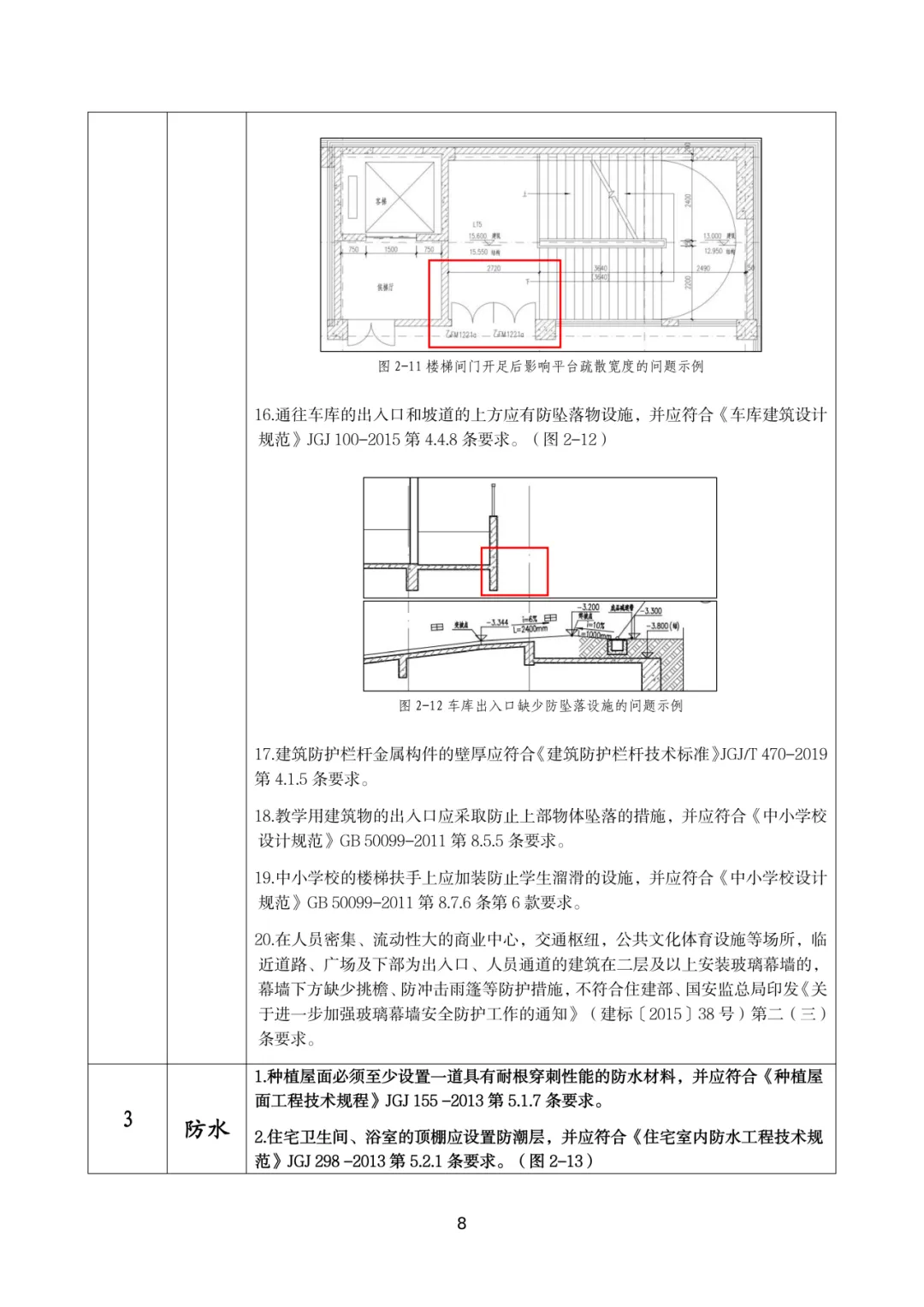 1.2.2 当住宅的公共出入口位于阳台、外廊及开敞楼梯平台下部时,应采取防止物体坠落伤人的安全措施,应符合《住宅设计规范》GB 50096-2011 第 6.5.2 条要求