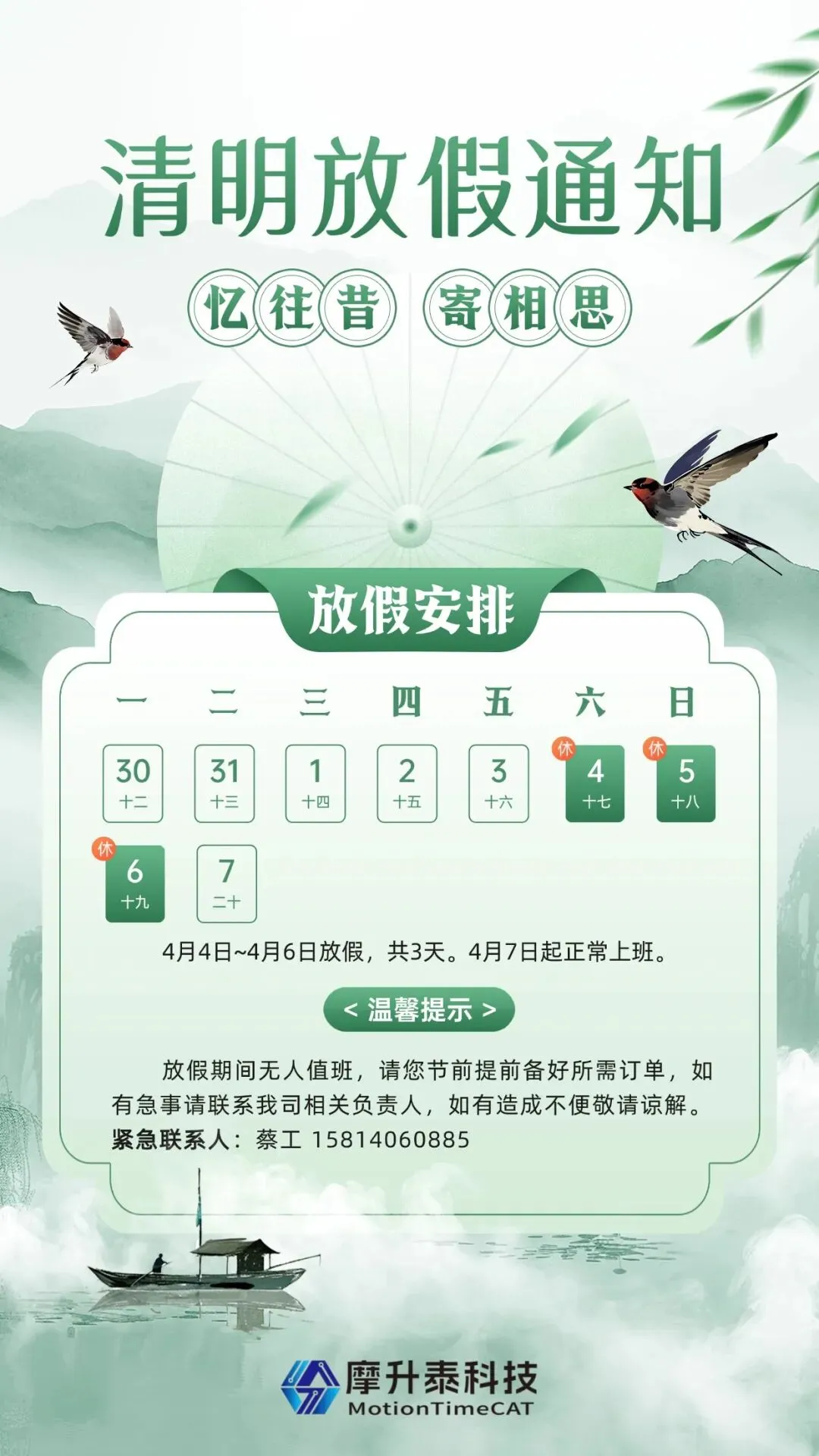 深圳摩升泰科技|2026年清明节放假通知