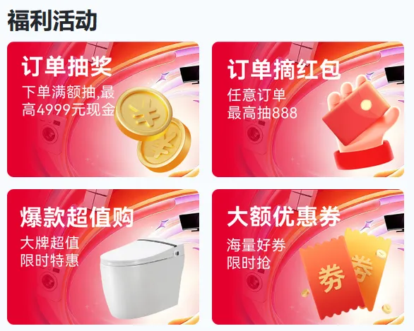 不限品牌、不限金额,只要下单就能摘红包!最高888元现金,或者直接抱走品牌电器。每一单都有机会,千万别手软!