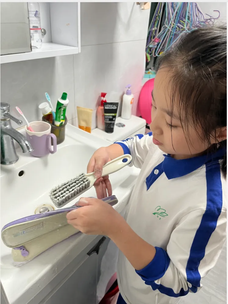 在生活中,我懂得体谅家人,总是做些力所能及的事,自己的鞋子自己洗,餐后主动帮妈妈洗碗,用小事为妈妈分担辛苦。
