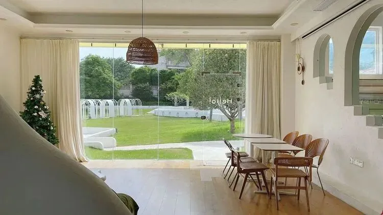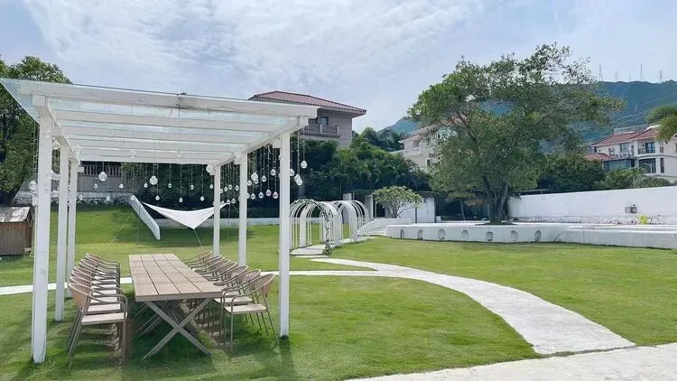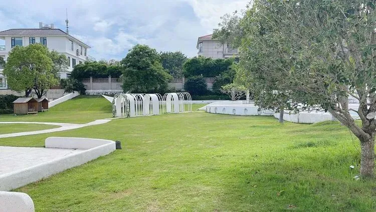 院内绿油油的真草坪和大树打造舒适的自然环境,结合人与自然的和谐,打造森系风格的户外庭院。