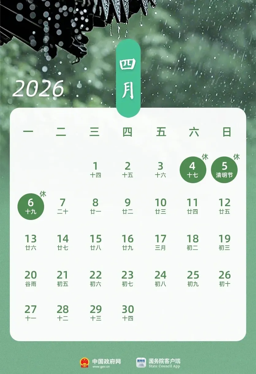 根据国务院办公厅发布的《关于2026年部分节假日安排的通知》,现将幼儿园2026年清明节假期安排如下: